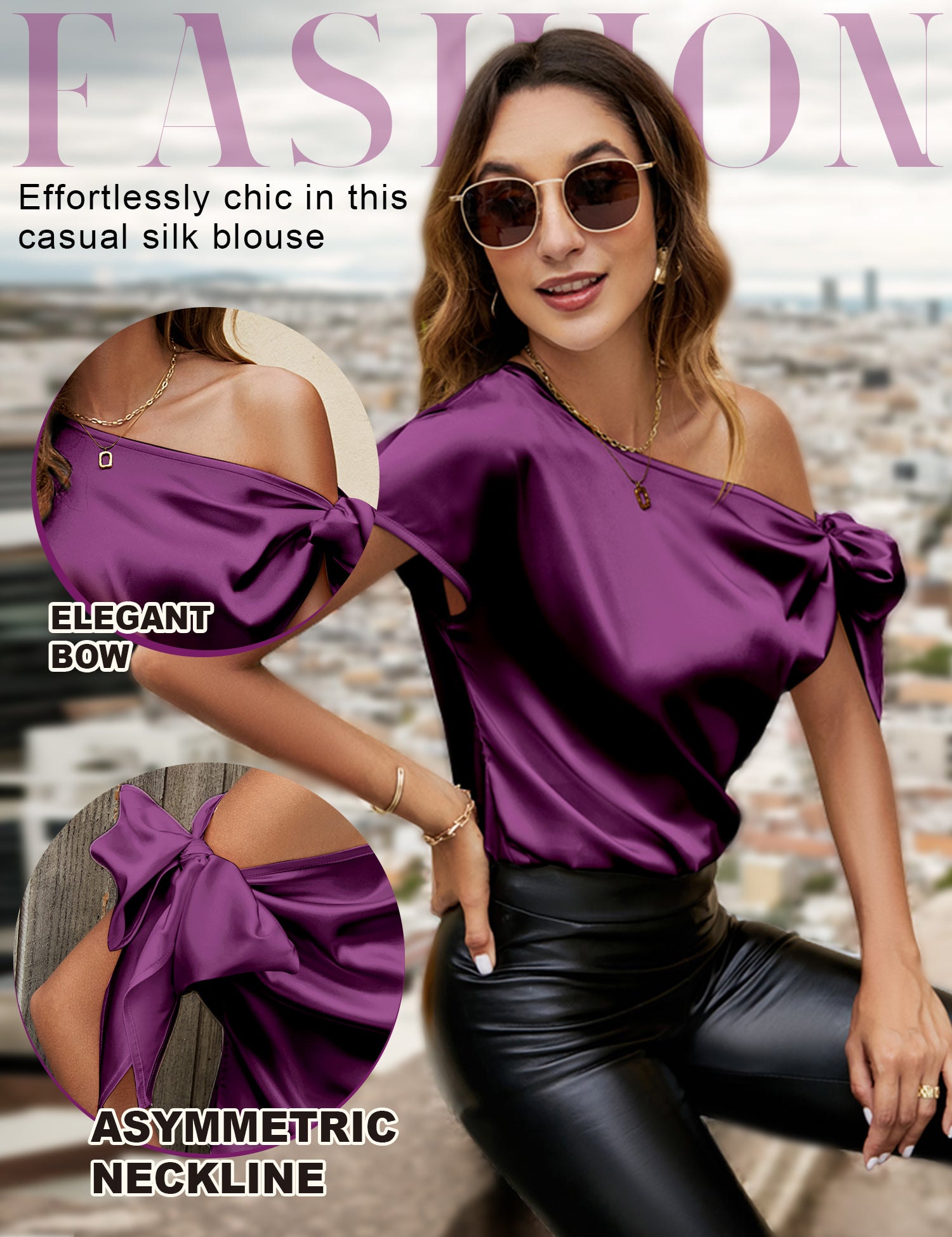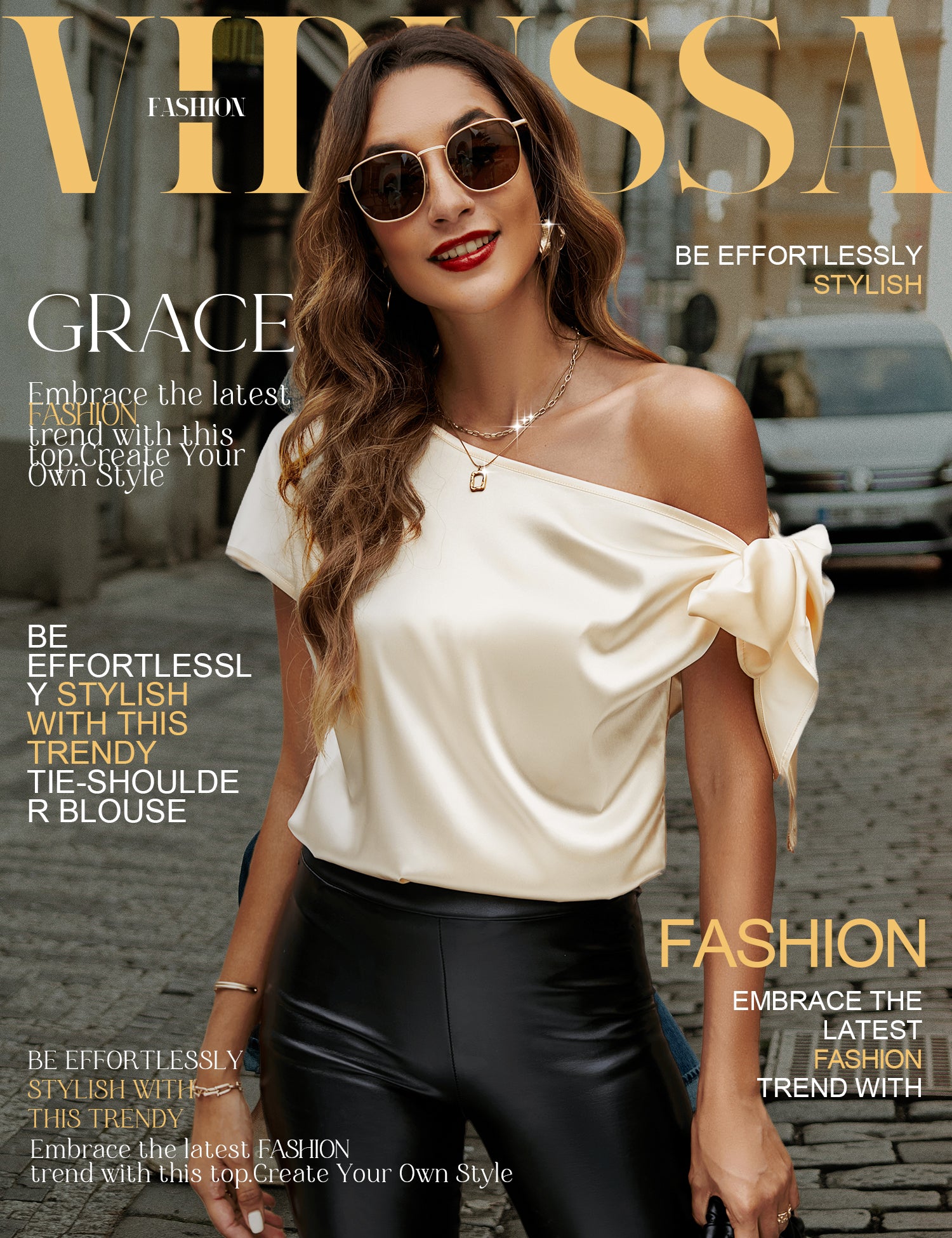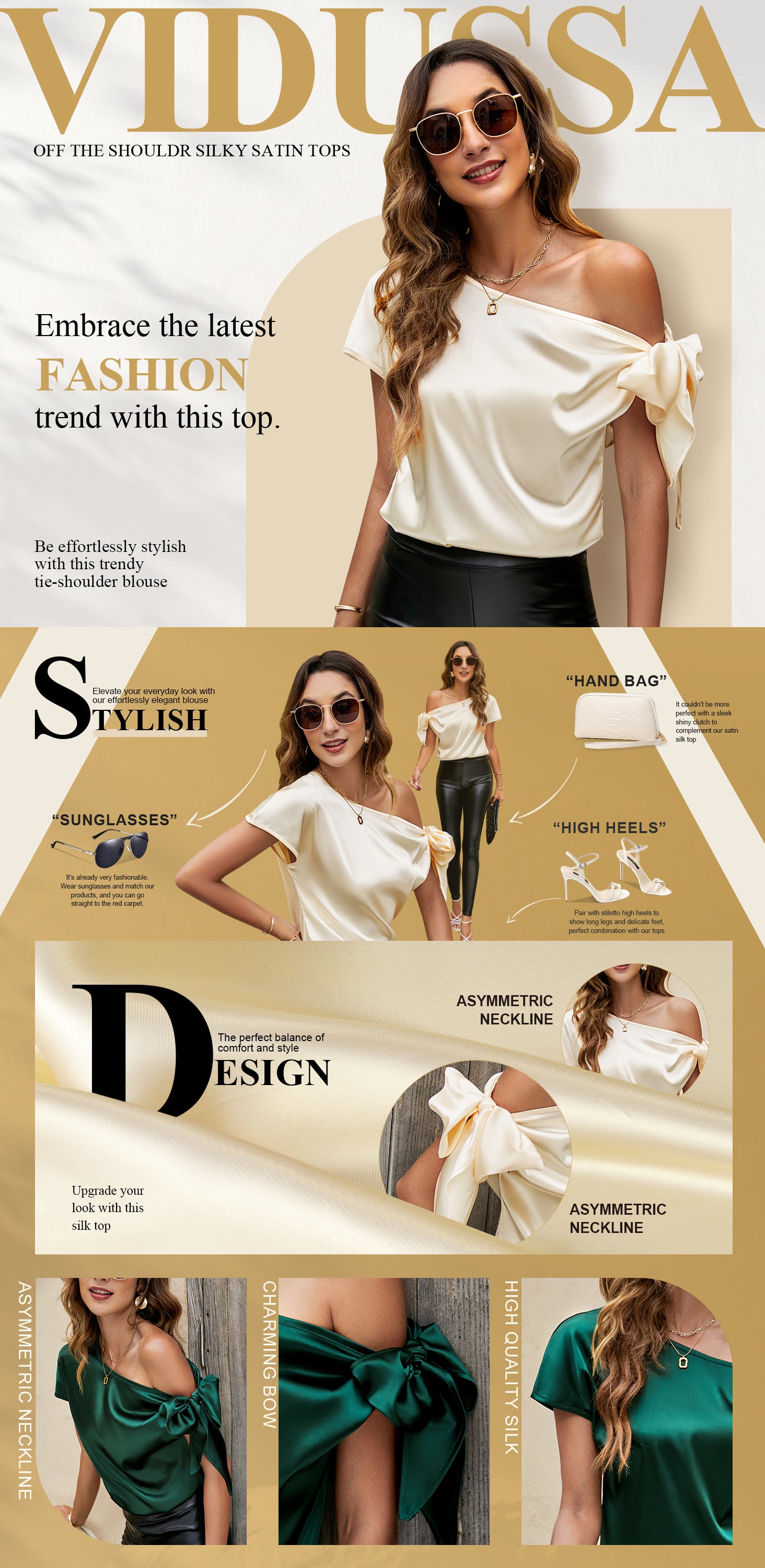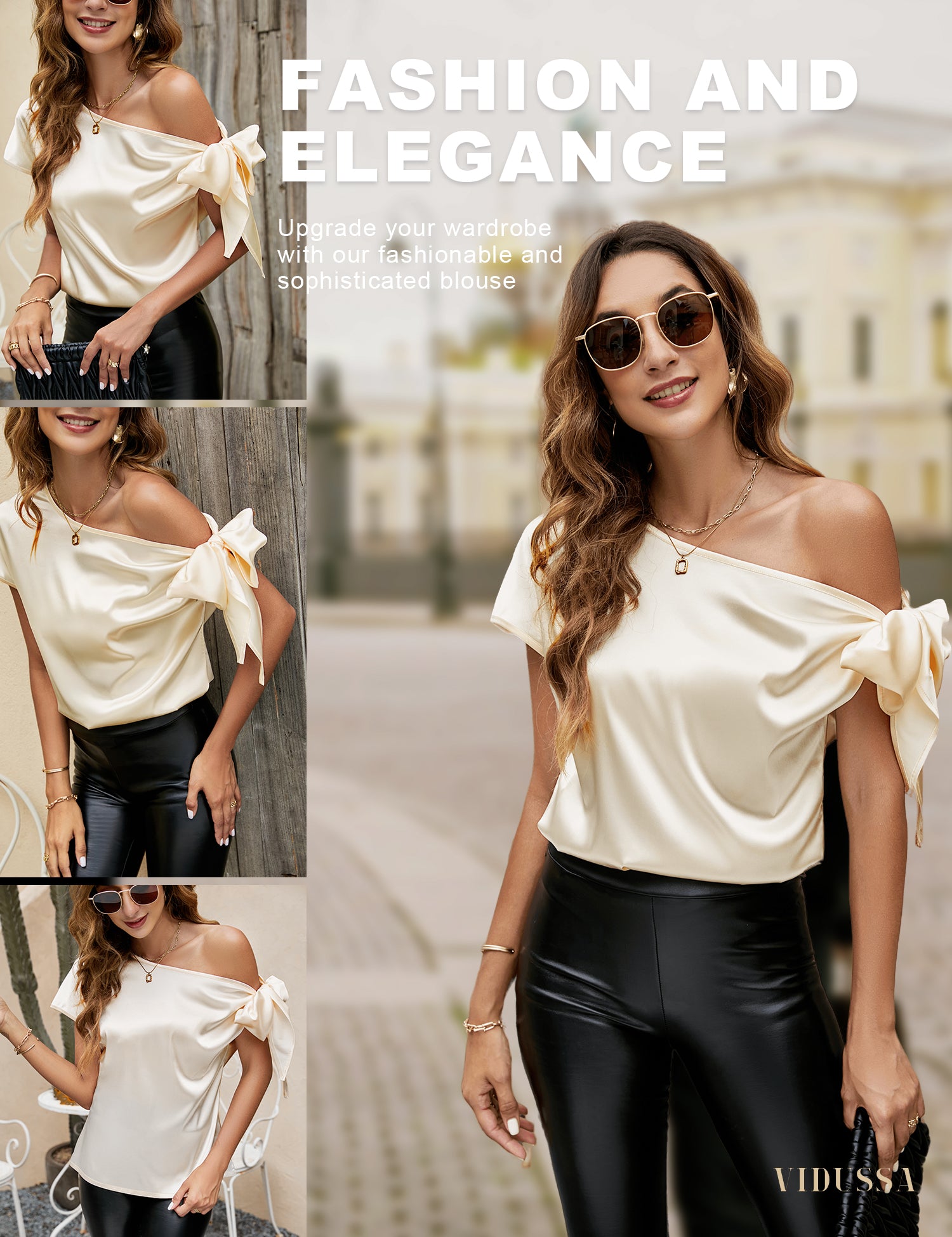 VIDUSSA Women's Off Shoulder Silk Tops Casual Short Sleeve