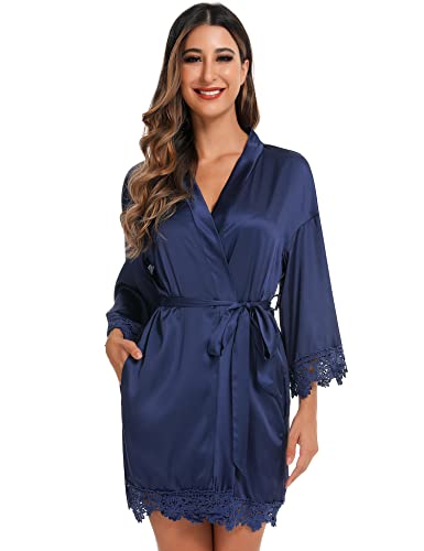 RSLOVE Women’s Satin Lace Lingerie Set – 2-Piece Babydoll Nightgown & Kimono Robe, Sexy Strap Chemise Bride Comfy Sleepwear