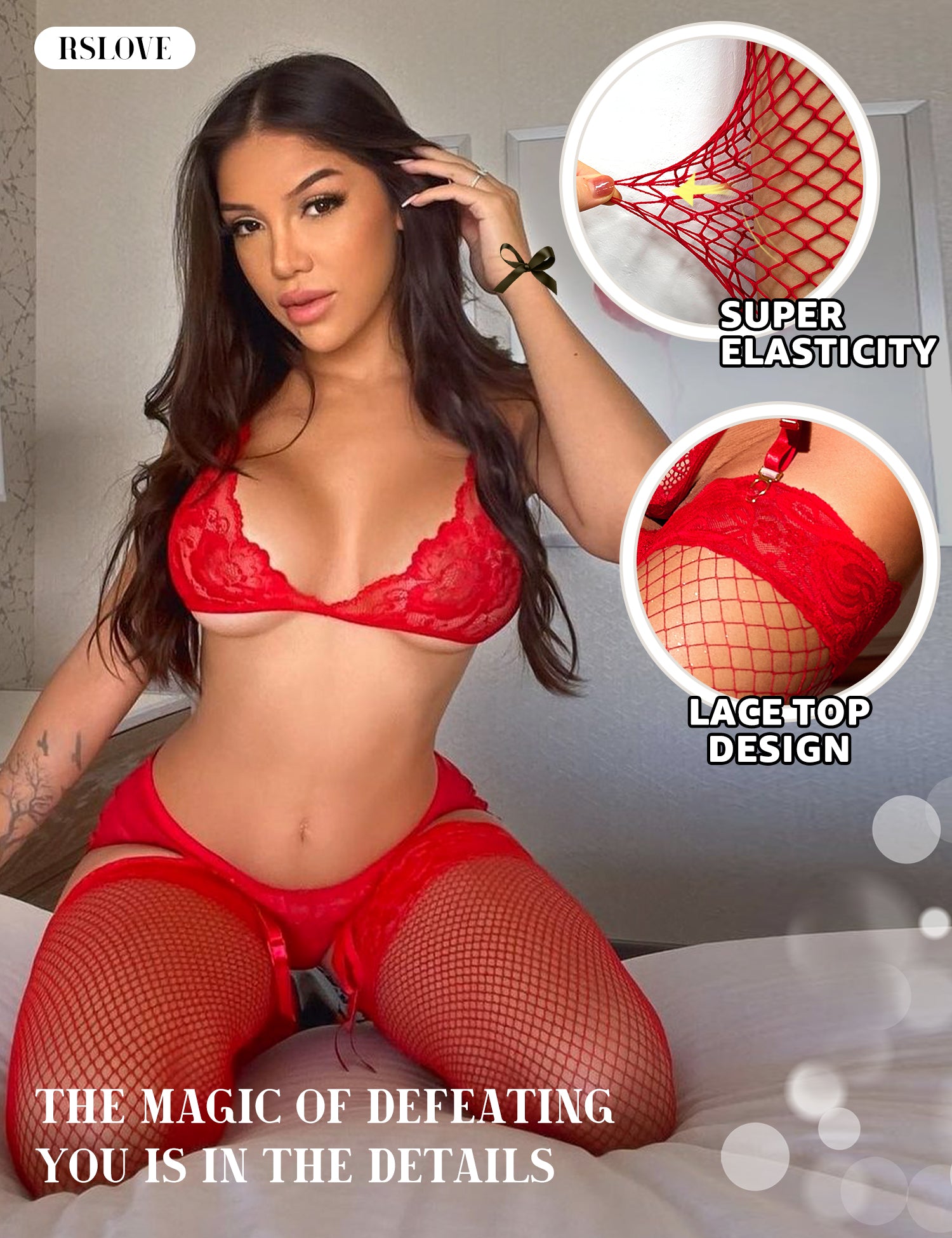 RSLOVE Women’s Thigh High Stockings – Lace Top Double Silicone Stay Up Pantyhose for Garter Belts & Lingerie Outfits