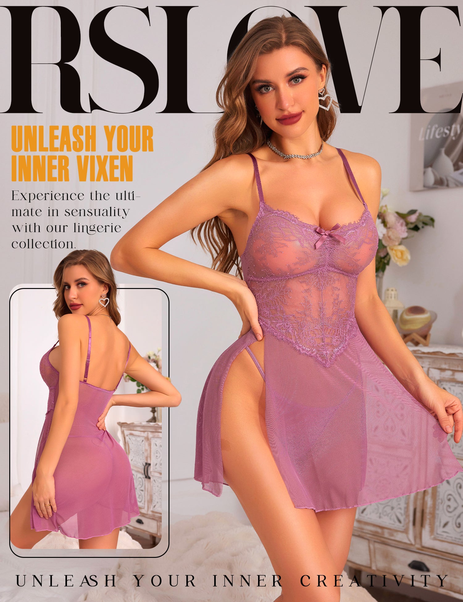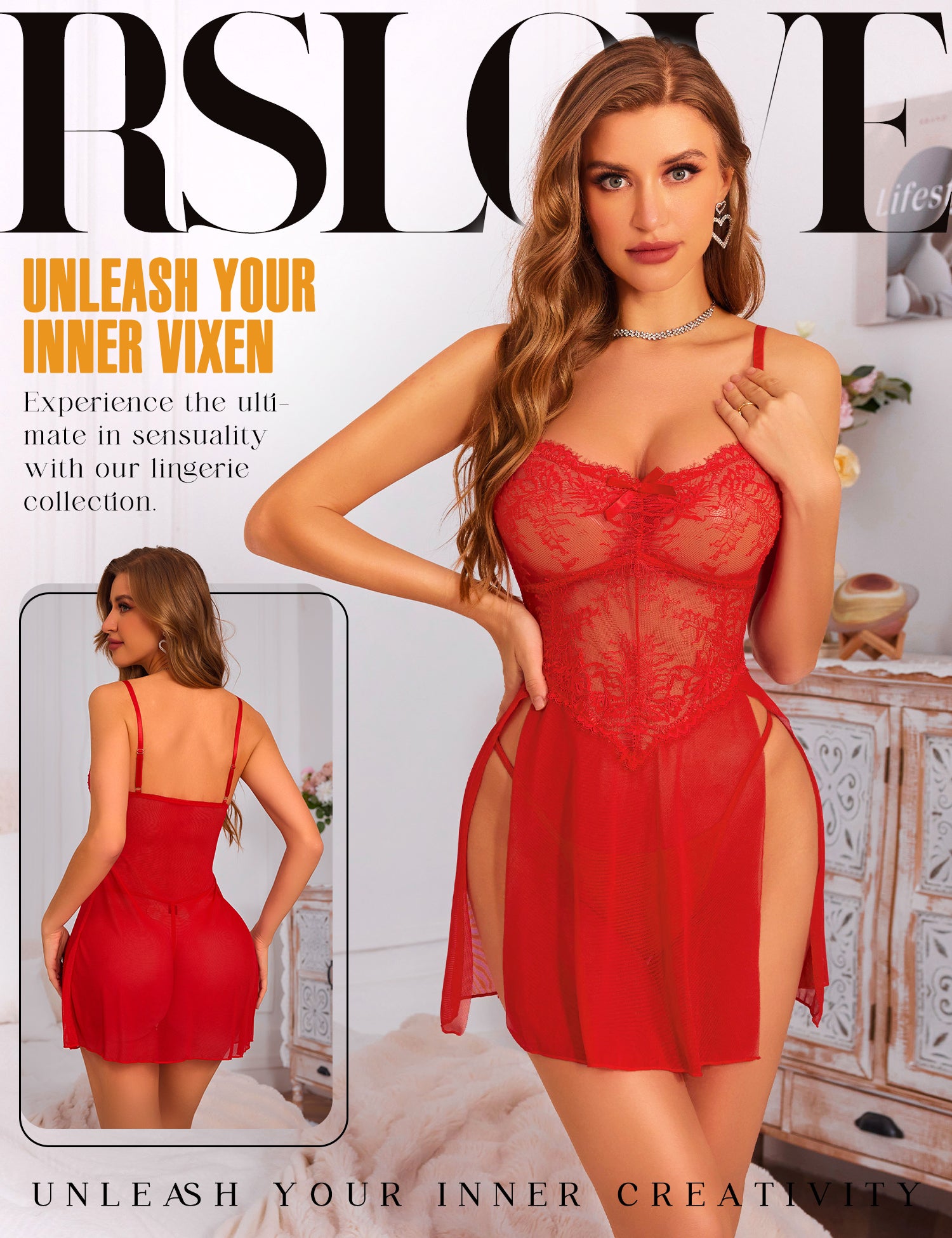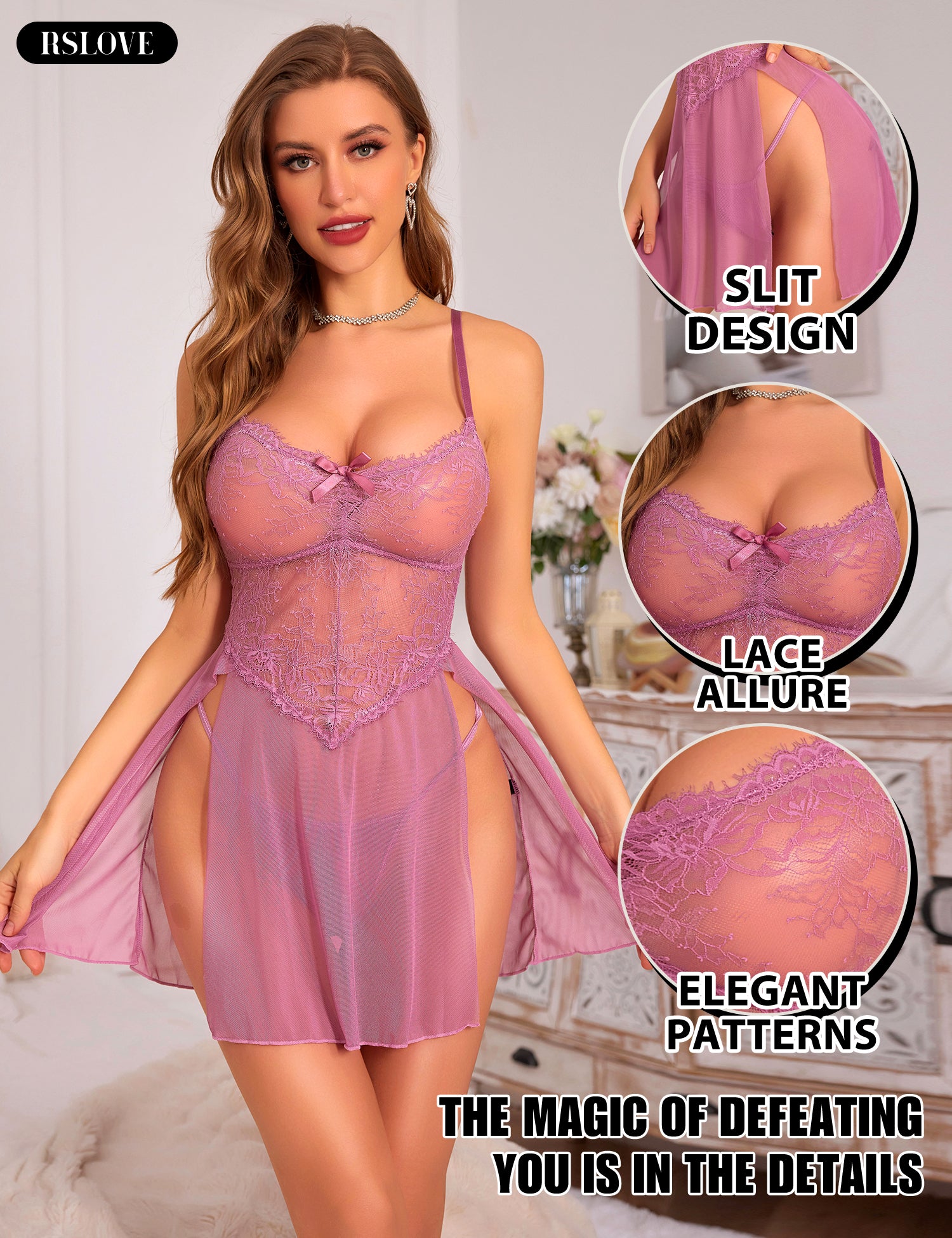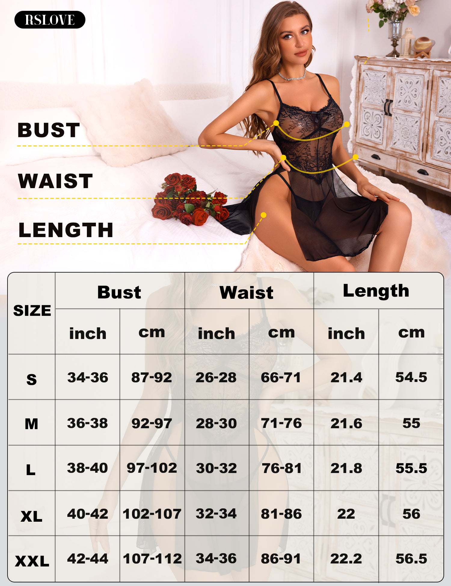 RSLOVE Women Sexy Babydoll Lingerie Lace Nightgowns Nighty Mesh Sleepwear Wedding