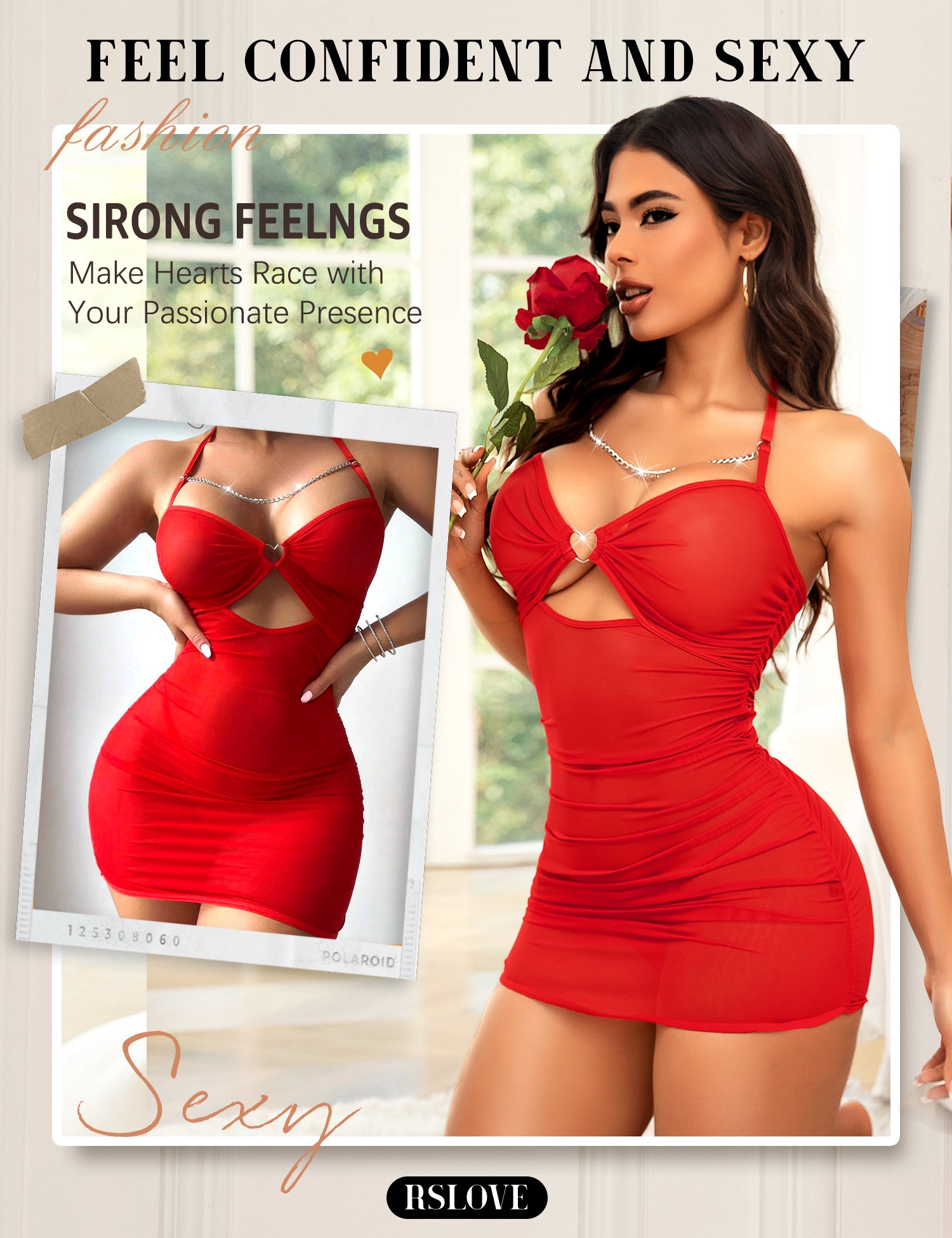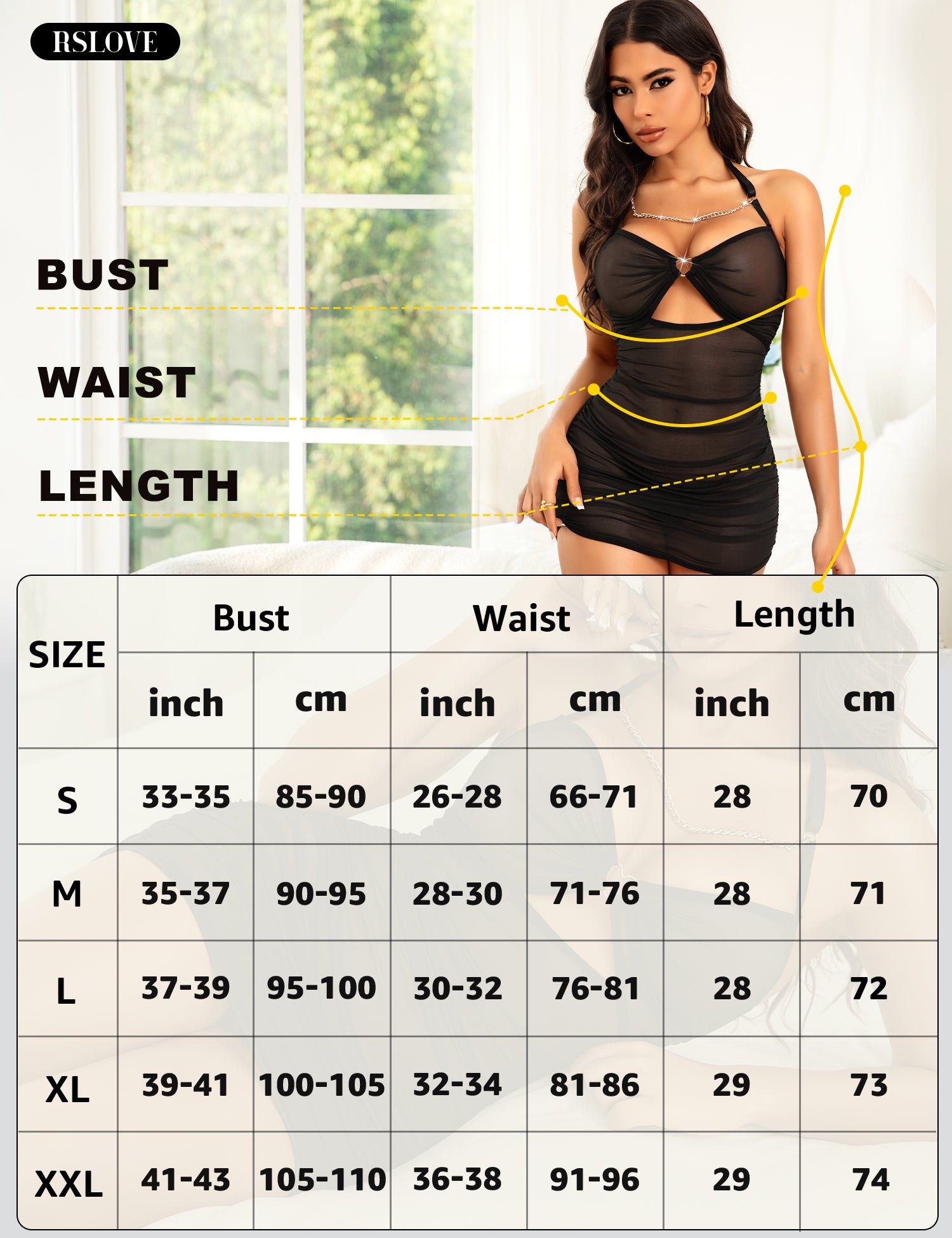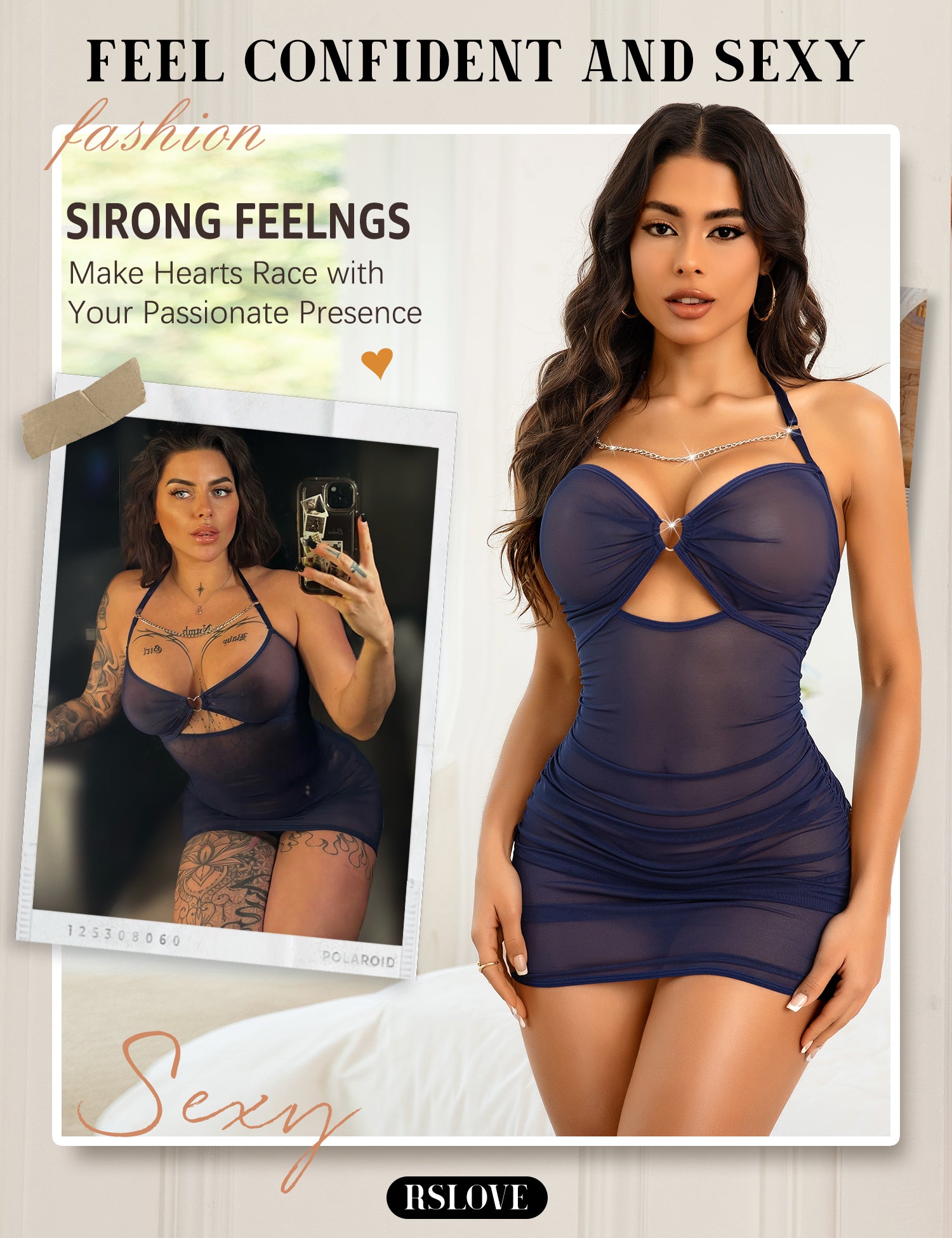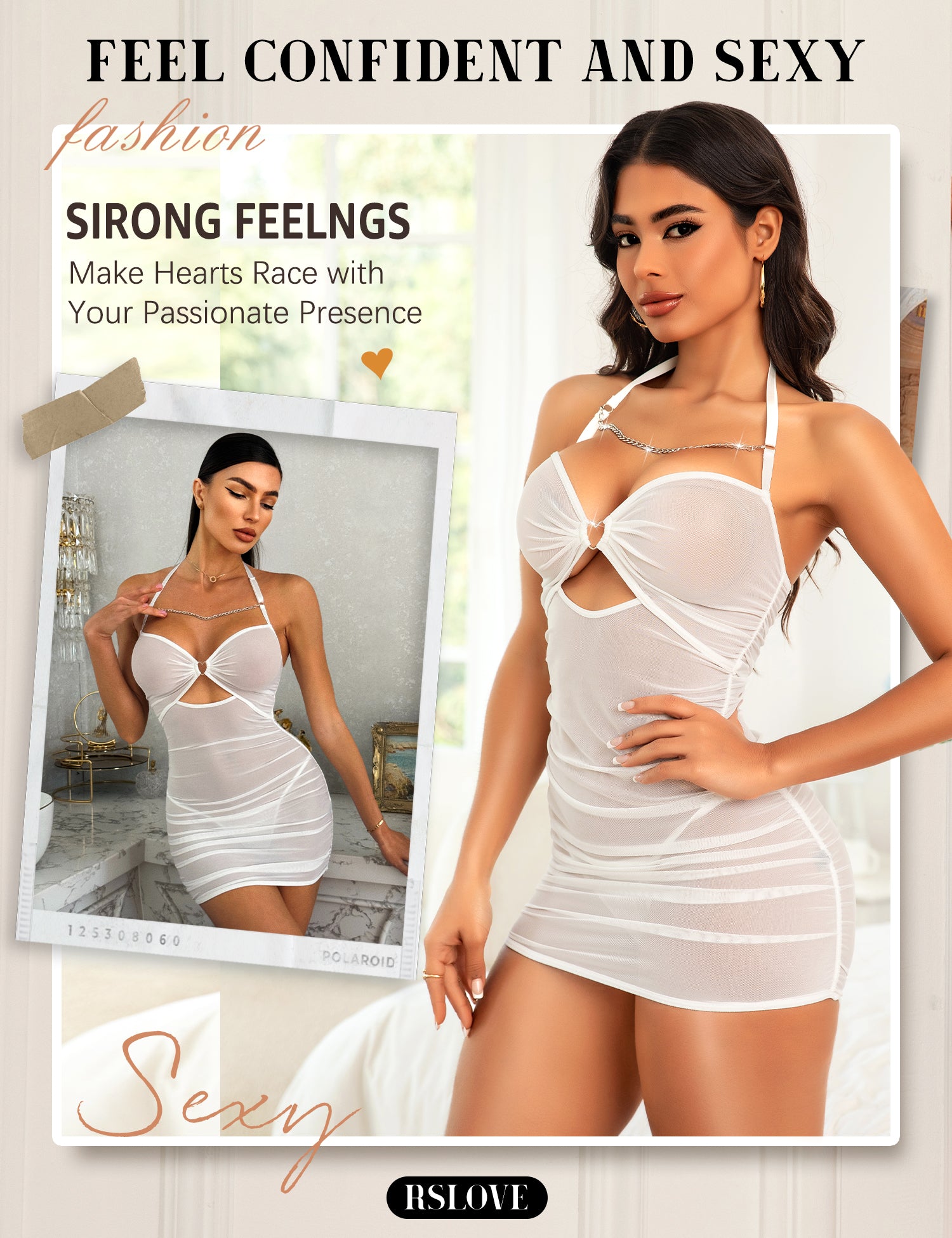 RSLOVE Women Sexy Babydoll Lingerie - Mesh Mini Dress Soft Nightwear Chemise