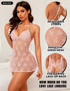- This lace babydoll lingerie features a trendy mesh sheer design with a stunning floral pattern. The double-layered bust adds a touch of allure, creating a captivating look that is both revealing and subtly opaque