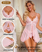 RSLOVE Sexy Babydoll Lingerie for Women - Lace Chemise Negligees Open Front Sleepwear with Thong