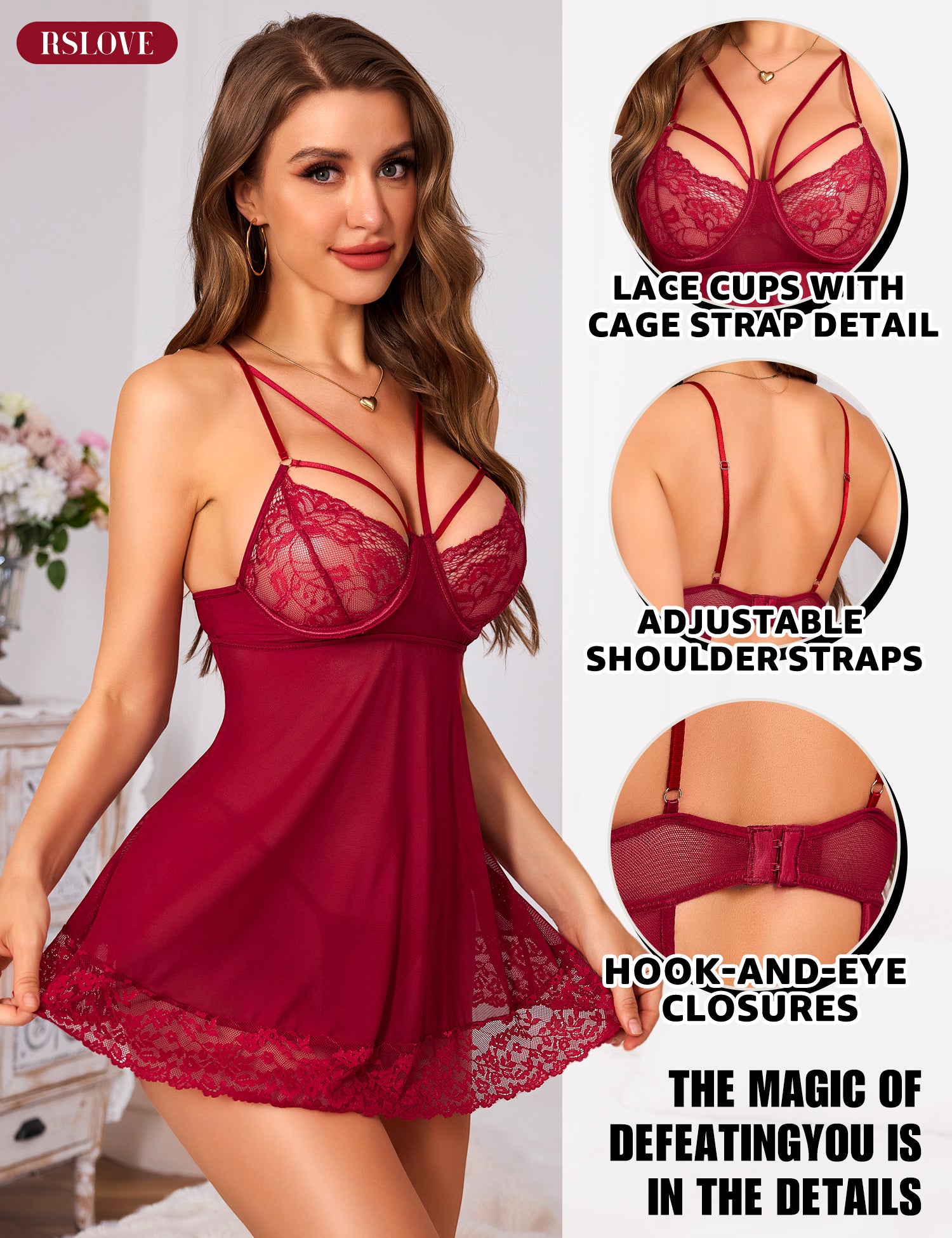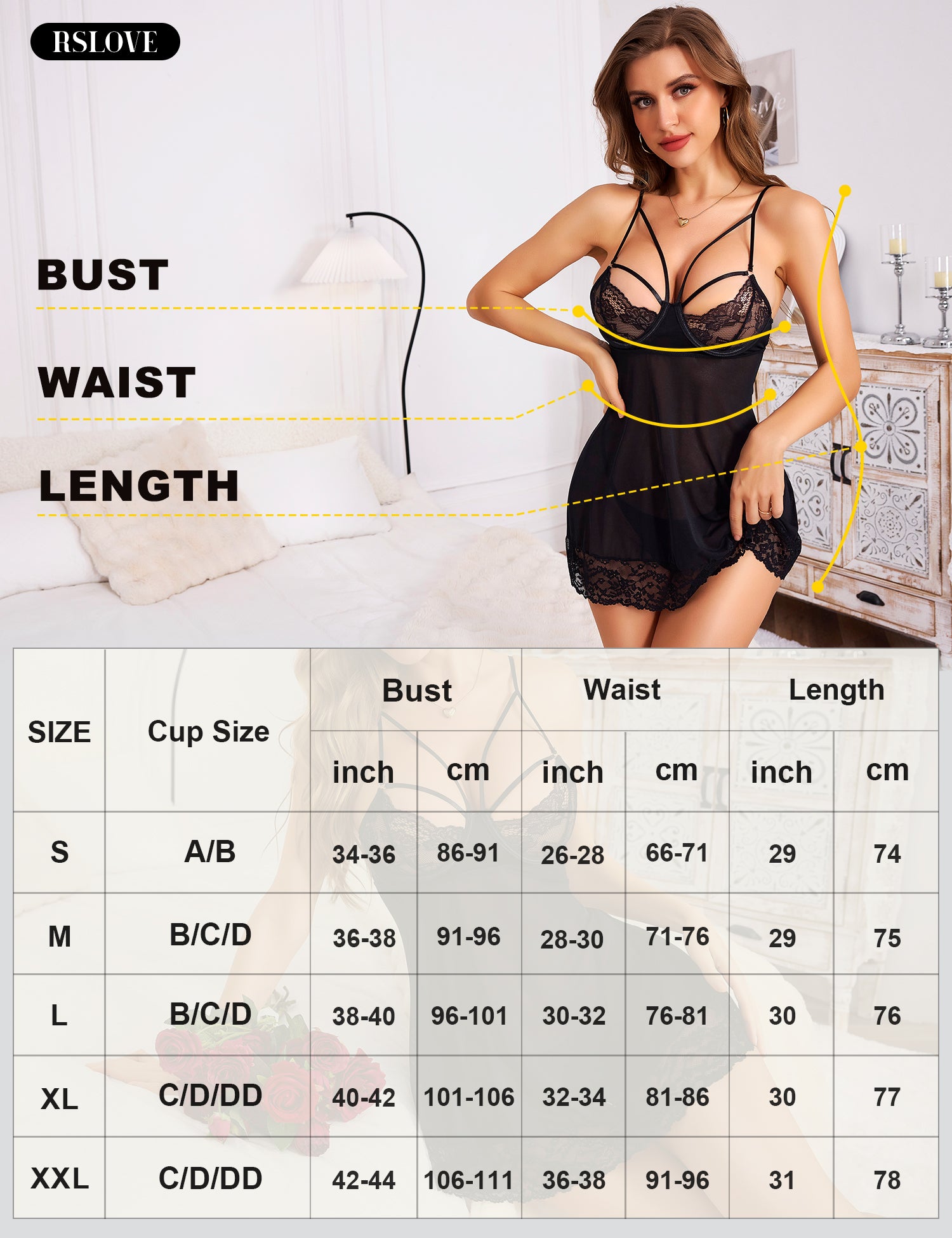 Feel irresistibly sexy and confident in this RSLOVE babydoll lingerie, ideal for making every night a special occasion.KINDLY NOTE: If you have a larger bust or are between sizes, we suggest sizing up for a better fit.