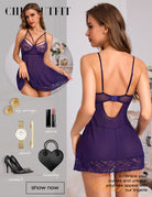 RSLOVE Women’s Lingerie Lace Babydoll - Sexy Nightwear V-Neck Strappy Nightgown with Thong