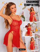 - Style: Indulge in the allure of delicate floral lace cups adorned with charming bow details, paired with adjustable spaghetti straps that ensure a flawless fit. The tantalizing side split design gracefully accentuates your silhouette, elongating your legs and exuding a seductive charm
