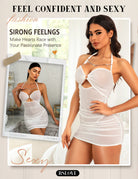 - Charming Chest Chain & Heart-Shaped Button Accent: Featuring a delicate chest chain and a heart-shaped button accent, this sexy lingerie draws attention to your bust with playful elegance. The unique details enhance the overall allure and make this mesh babydoll a standout piece in your lingerie wardrobe;