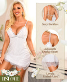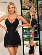 - Exquisite Design: Featuring a classic V-neck adorned with intricate eyelash lace, this womens sleepwear enhances your decolletage, creating an effortlessly elegant look. The full inner lining offers comfort and discretion, making it perfect for intimate moments or daily lounging. A stunning open-back design and the sparkling silver straps showcases your graceful curves, elongating your silhouette for a timelessly chic appeal;