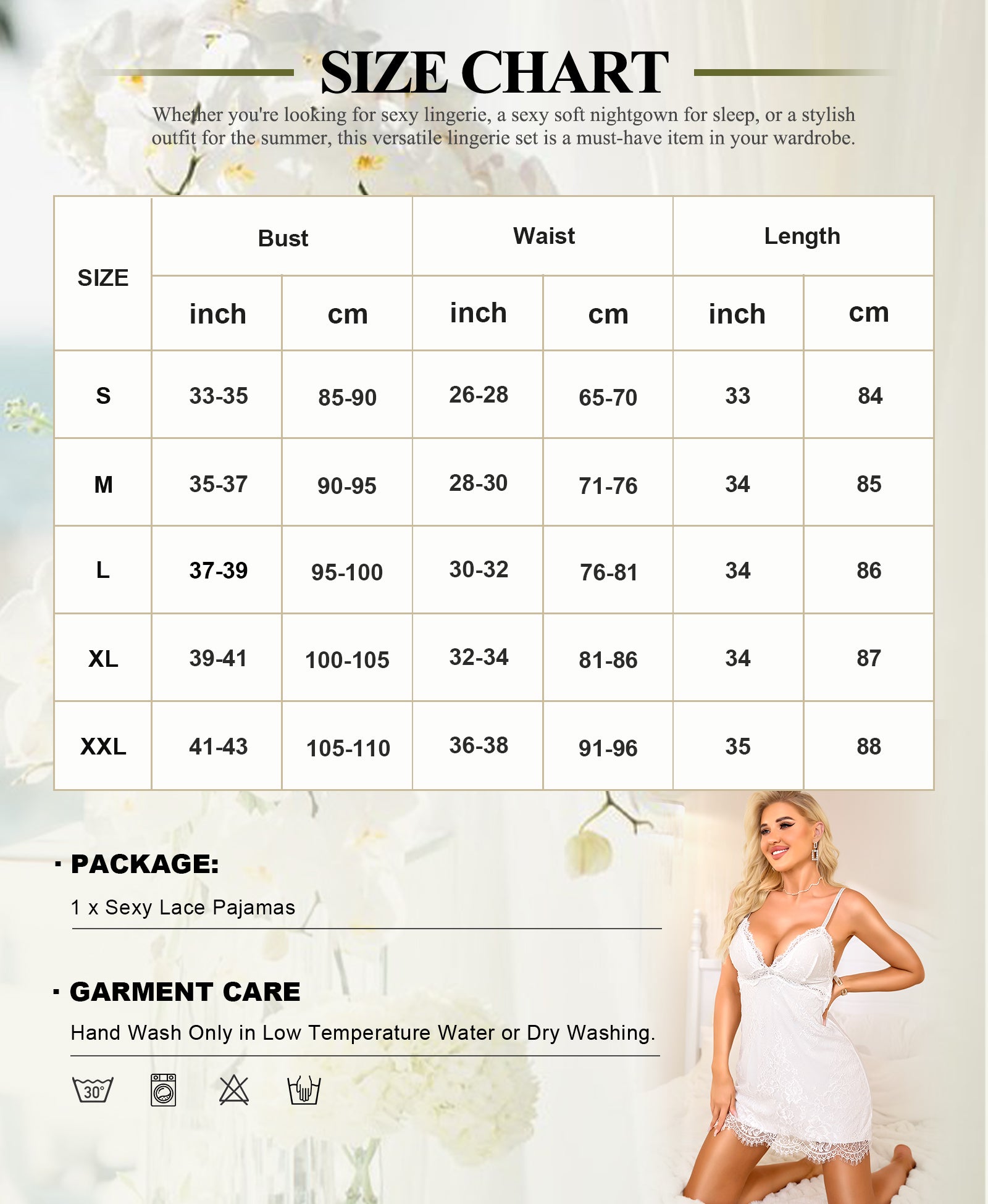 - Package Content: 1 x sexy nightgowns for woman. To care for this night dress for women, hand wash in cold water, lay flat to dry, and avoid bleach or ironing to preserve the delicate lace and shimmering details;