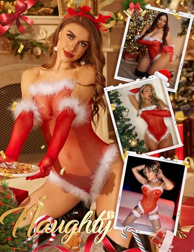 - A Gift to Unwrap: Adorn yourself like the most exquisite present as you slip into this sexy lingerie. This red lingerie is a bewitching blend of tradition and temptation, the delicate fishnet caresses your curves like a gentle snowfall, promising moments of pure delight. Playful faux fur trim adds a touch of flirtation, while Christmas gloves exude an irresistible blend of sophistication and seduction;