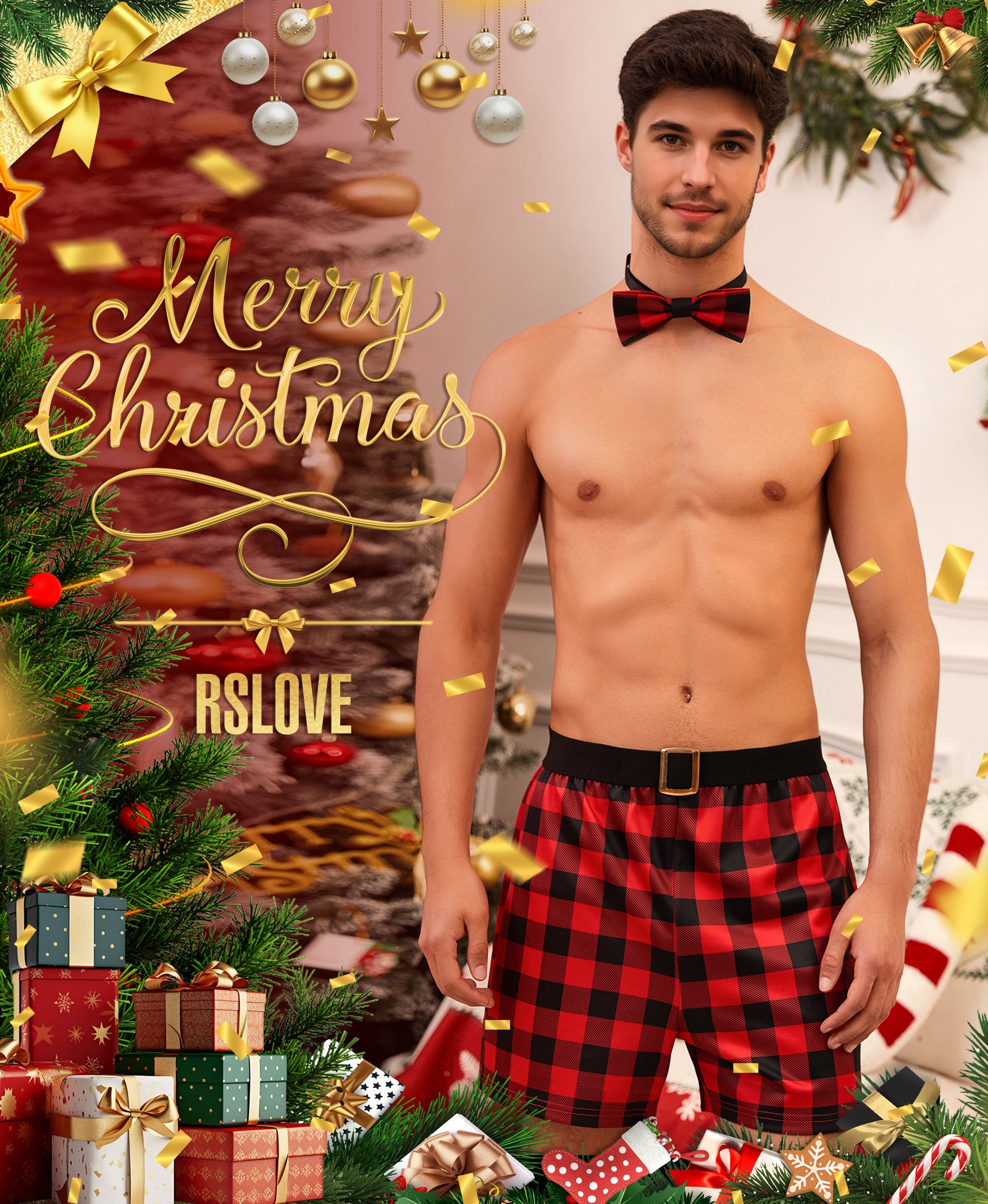- Fashion style: Christmas lingerie uses the classic red and black checkered color scheme to show charm. Christmas shorts are cleverly paired with a bow tie to bring you a unique fashion style. Wearing Christmas underwear for men, you will become the focus of the party crowd.