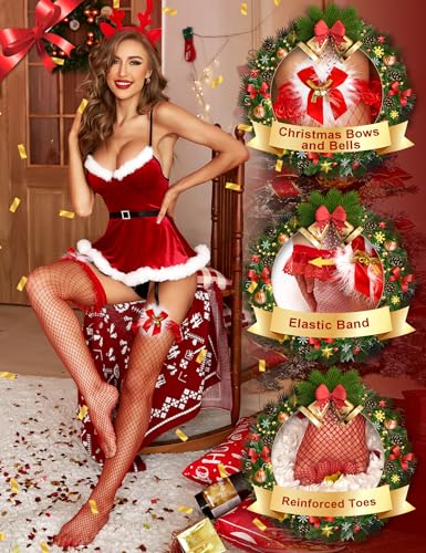 - Best Christmas gift: This sexy Christmas fishnet stocking uses a highly elastic fabric to achieve a yardage that accommodates multiple sizes and fits all leg shapes. Decorate yourself with this Christmas stocking and give your lover a Christmas gift, you can imagine his look when he sees this gift. Red fishnet stockings create your own sexy Christmas look - perfect for Christmas, holiday and New Year parties. Everyone deserves it!