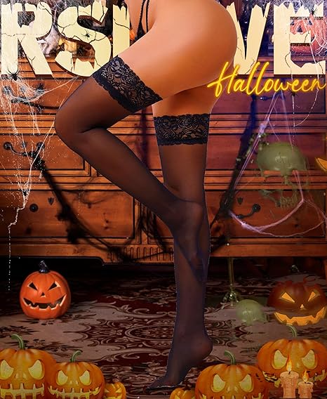 RSLOVE Lace Thigh-High Sheer Stockings with Grip