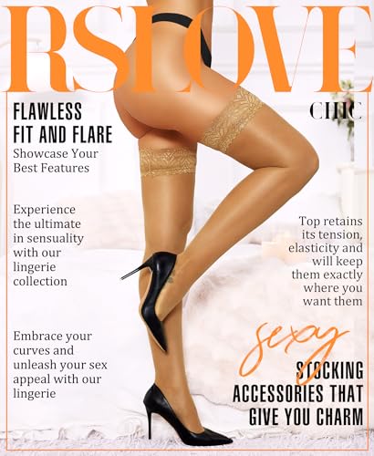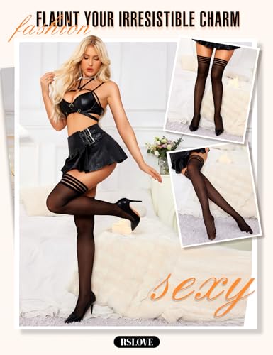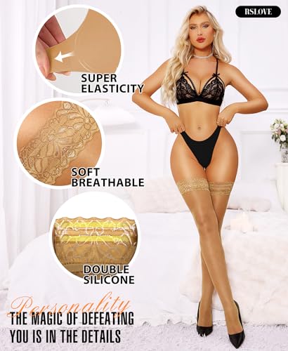 RSLOVE Women's Thigh High Stockings - Silicone Lace Top Semi Sheer Stay Up Pantyhose Sexy Lingerie