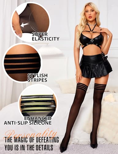 RSLOVE Thigh High Stockings: Stripe Top, Anti-Slip