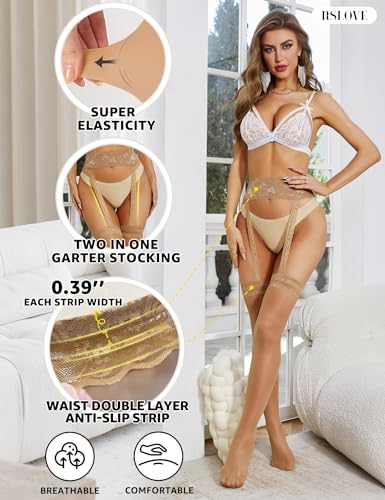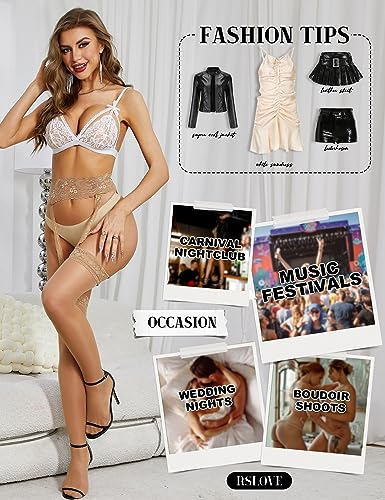 RSLOVE Stockings for Women Sheer Thigh High Sexy Pantyhose Lace Suspender Tights Garter Antiskid