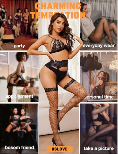 - Thigh High Stockings and Garter Belt in One: The RSLOVE Sexy Suspender Pantyhose seamlessly combines fishnet stockings and a garter belt into one sleek, easy-to-wear piece. No more fussing with bulky clips or fasteners—just slip them on and go. This design adds a touch of fashion and sex appeal, while also being practical and cost-effective, making it perfect for any occasion
