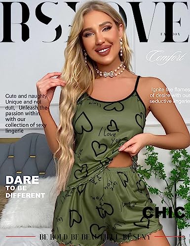 - UNIQUE PRINT: Indulge in the charm of our pajama set adorned with a delightful heart print, adding an element of allure to your look. With the unique edge design at the hem adds a distinctive touch to this cami shorts set, you'll effortlessly become the center of attention!