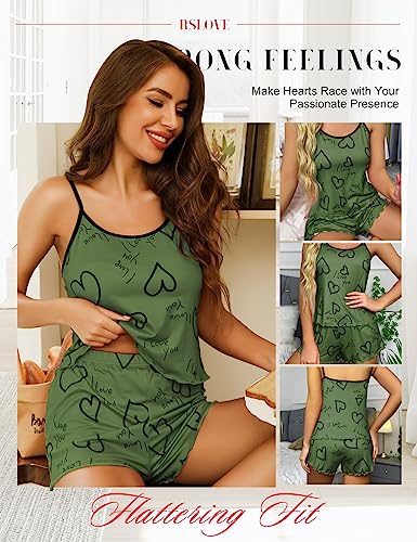 RSLOVE Heart Print Silk Cami & Shorts Pajama Set - Soft Sleepwear