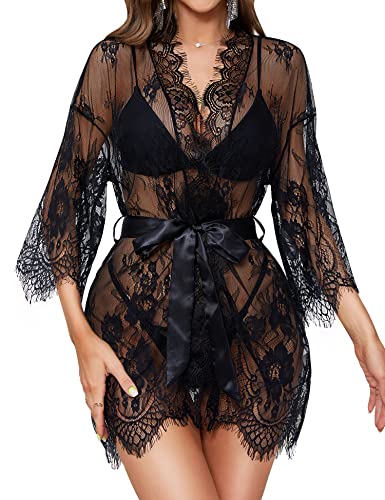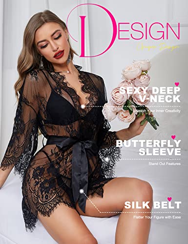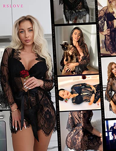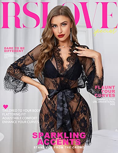 RSLOVE Women's Lace Kimono Robe - Sexy Babydoll Lingerie