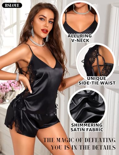 RSLOVE Satin Pajama Set - Lace Cami and Shorts Sleepwear