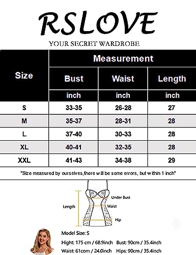 RSLOVE Women's Lingerie Sexy Nightgown – V Neck Satin Babydoll Chemise Lace Slip Dress Sleepwear Loungewear
