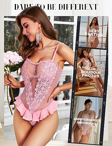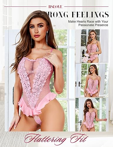 RSLOVE Sexy Lace Bodysuit - Floral Embroidered Mesh Teddy Babydoll