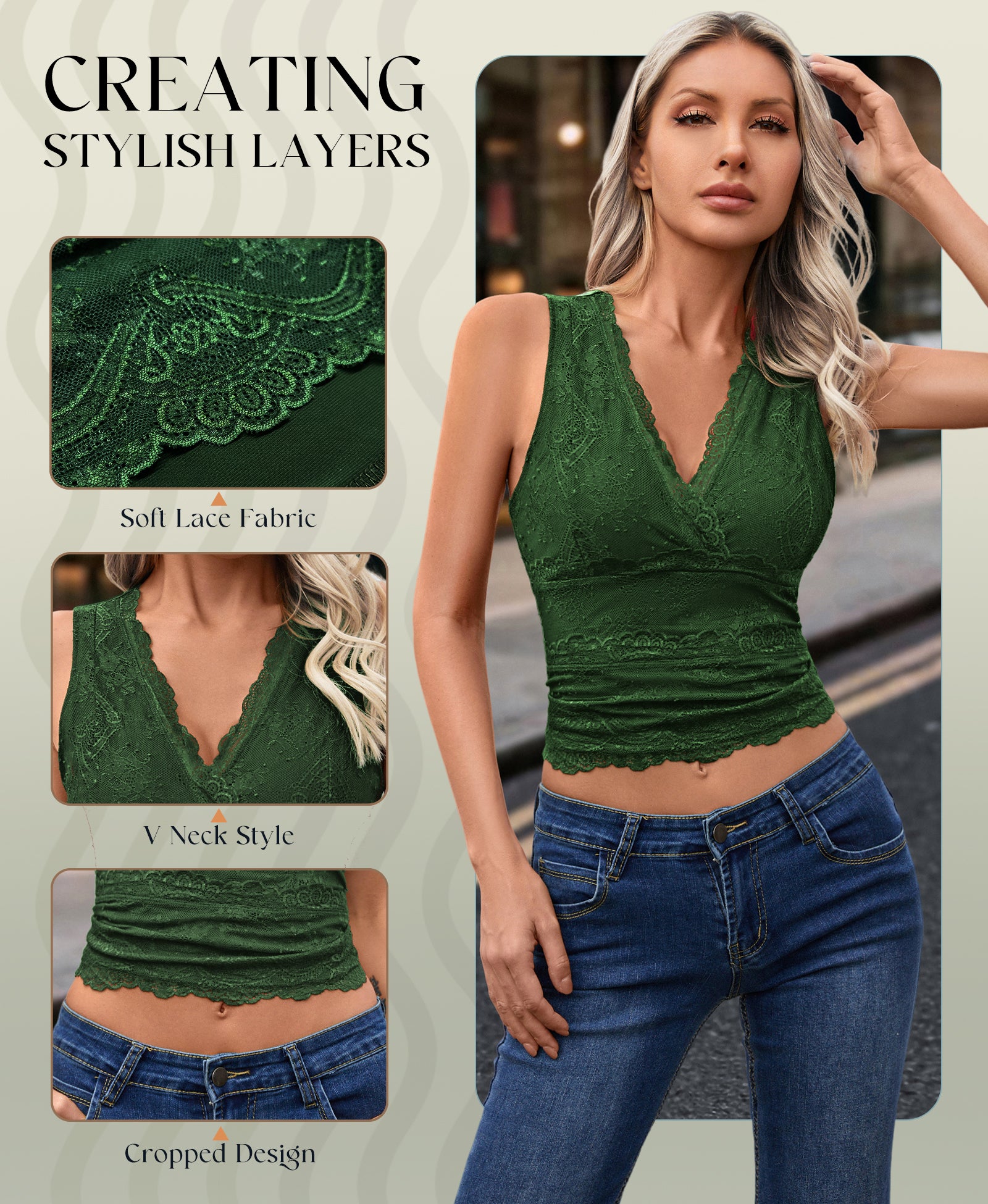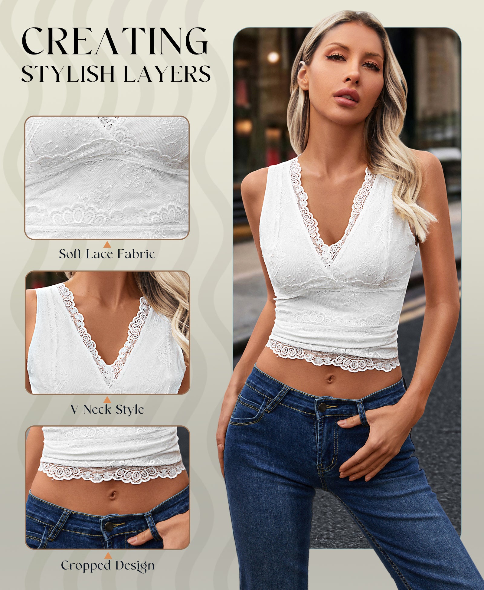 - Influencers and fashion bloggers can't get enough of our Womens Lace Tank Tops. The V Neck Camisole is a favorite for its flattering fit and the cropped halter top is a must-have for any fashion-savvy wardrobe. Stay on trend with this Y2K-inspired piece