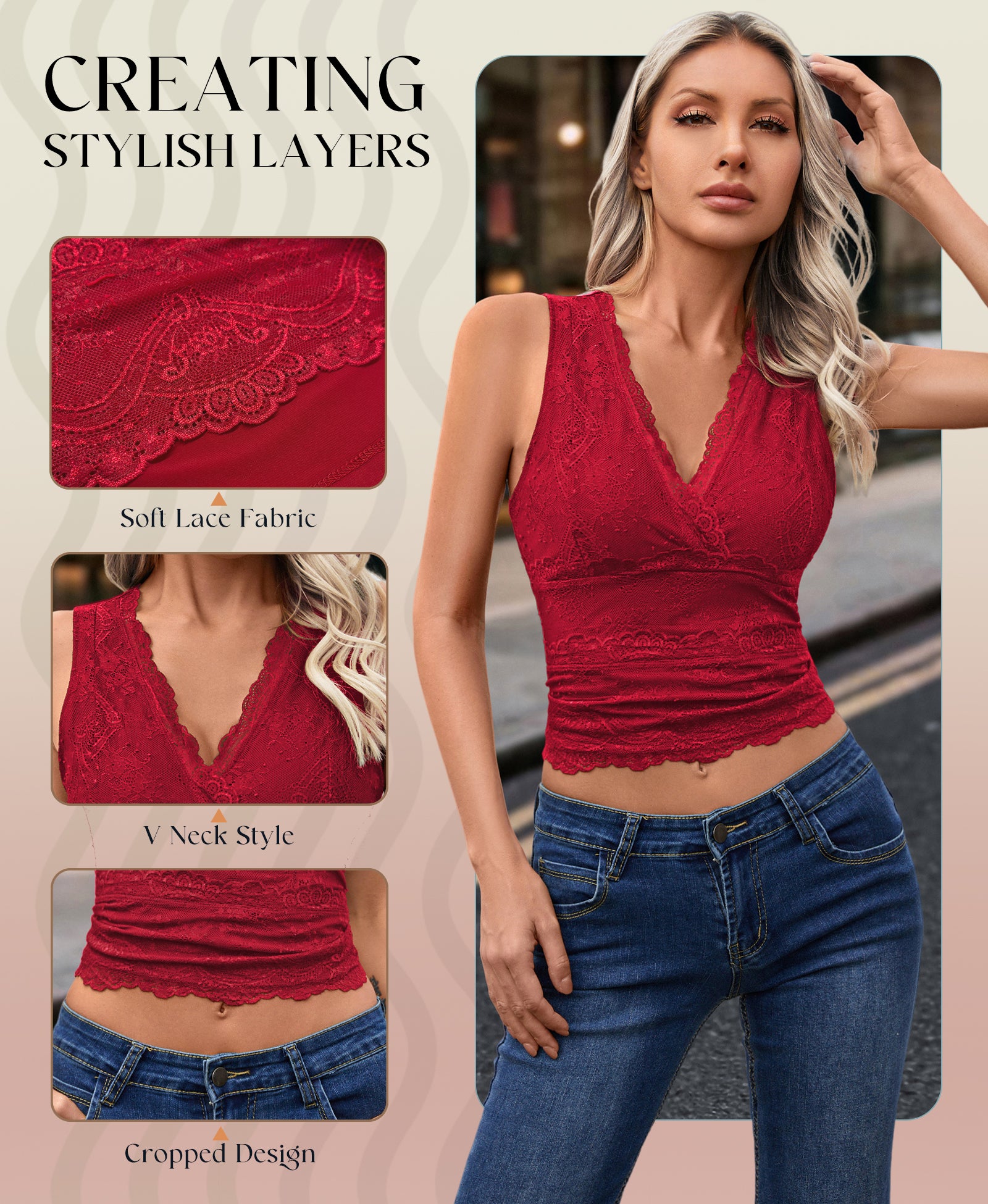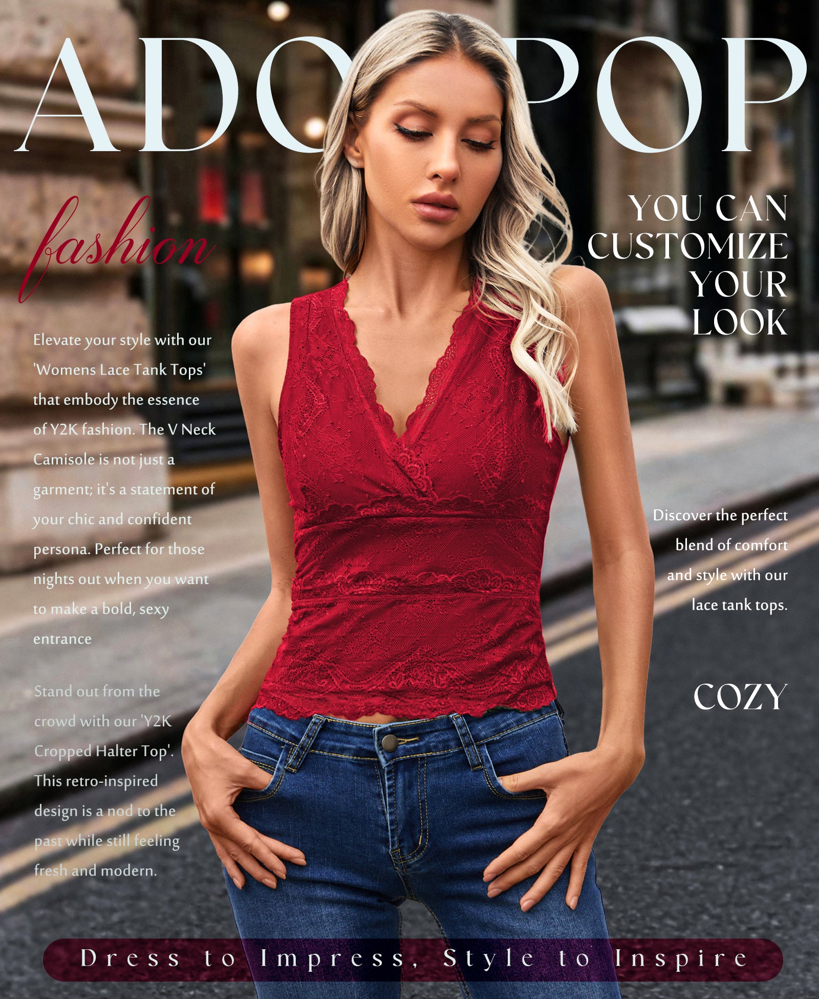 - Dazzle at your next special event with our Womens Lace Tank Tops. The V Neck Camisole is perfect for weddings, parties, or any occasion that calls for a touch of elegance and sexiness. Make a memorable impression with our Y2K-inspired design.