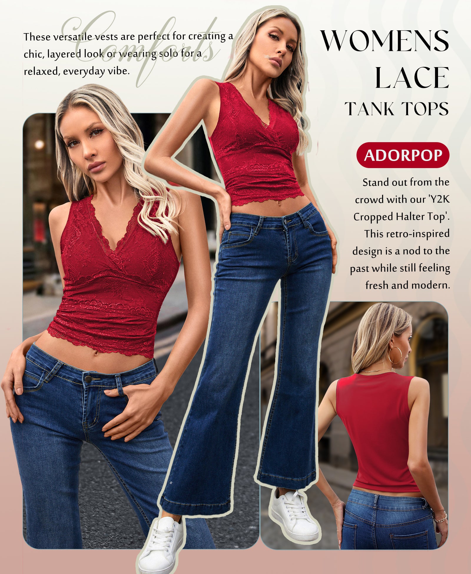 - For the fashion-forward woman, our Womens Lace Tank Tops are a must. The V Neck Camisole and cropped halter top design are a nod to the Y2K era, making it a chic choice for those who love to stay ahead of the curve.