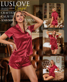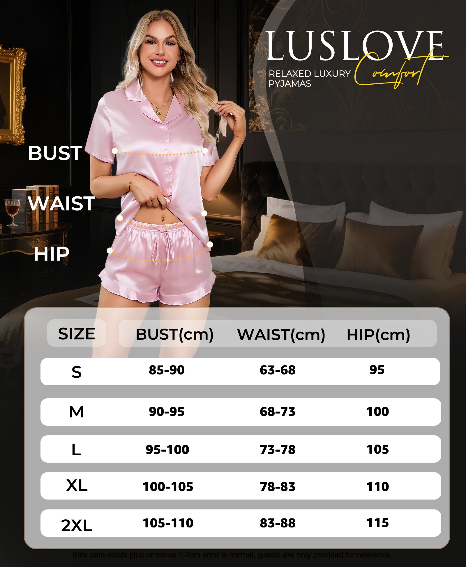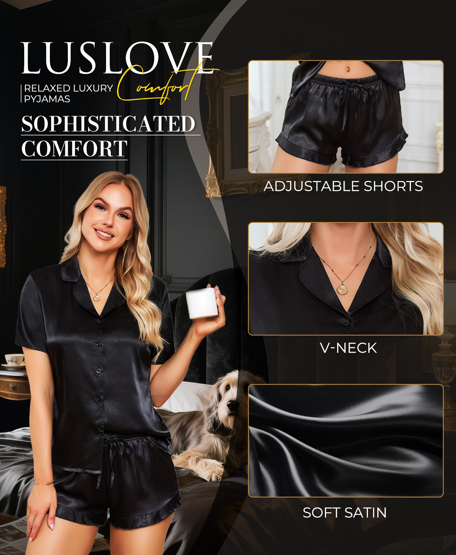 LUSLOVE Women's Satin Pyjama Sets - Silk Pjs Button Down Pyjamas 2 Piece Sleepwear