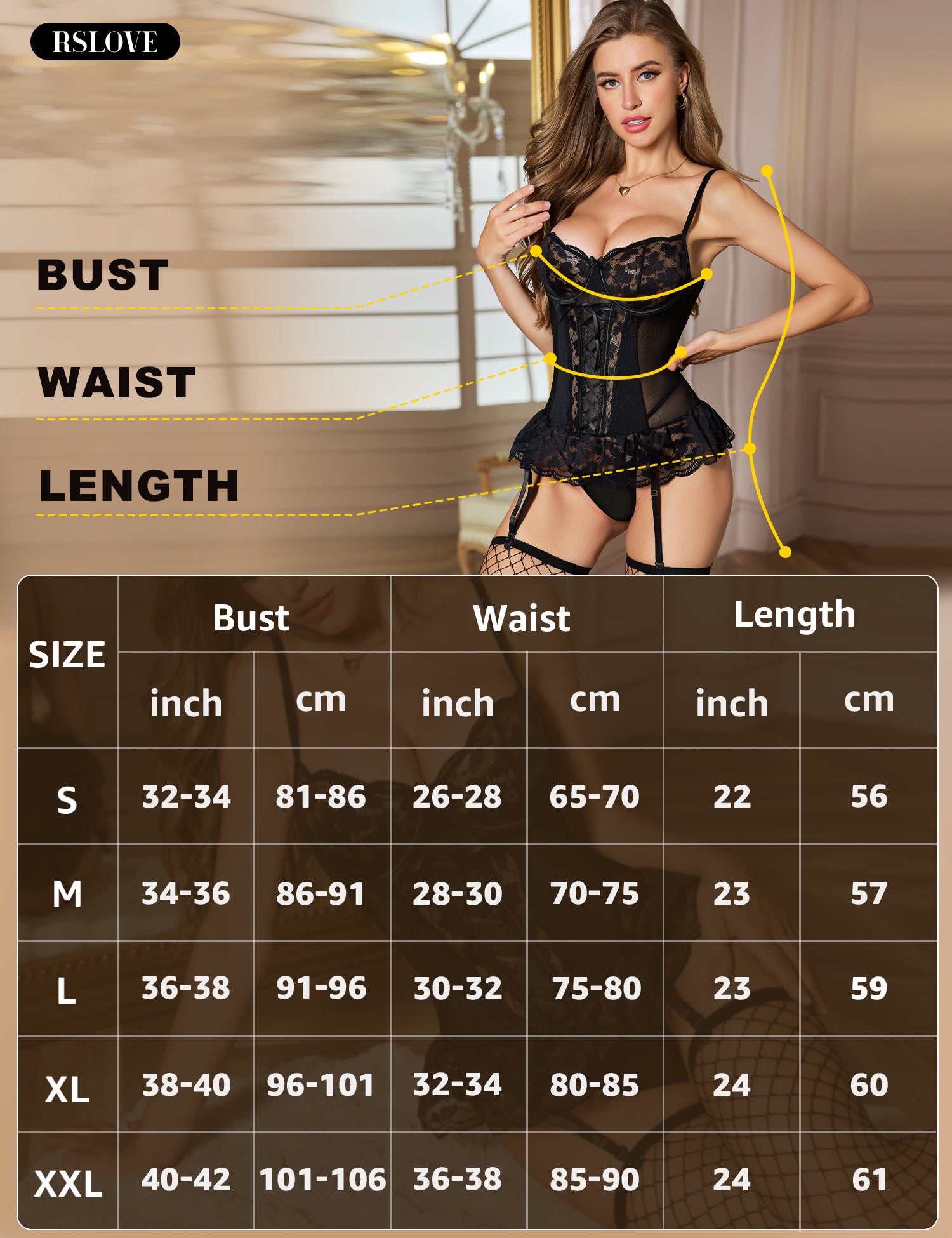RSLOVE Lingerie Sets for Women Sexy - Lace Corset Bodysuit with Garter Belts Underwire Babydoll Sleepwear