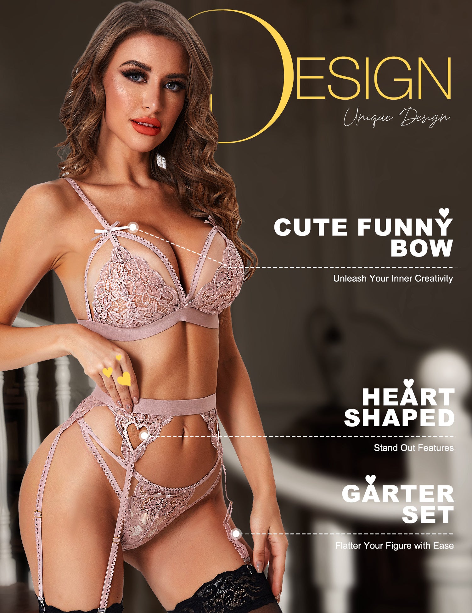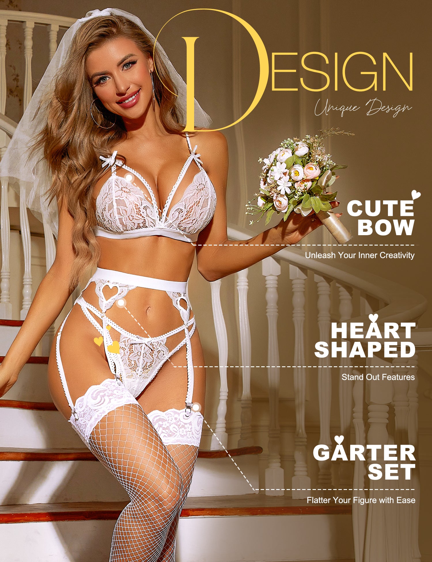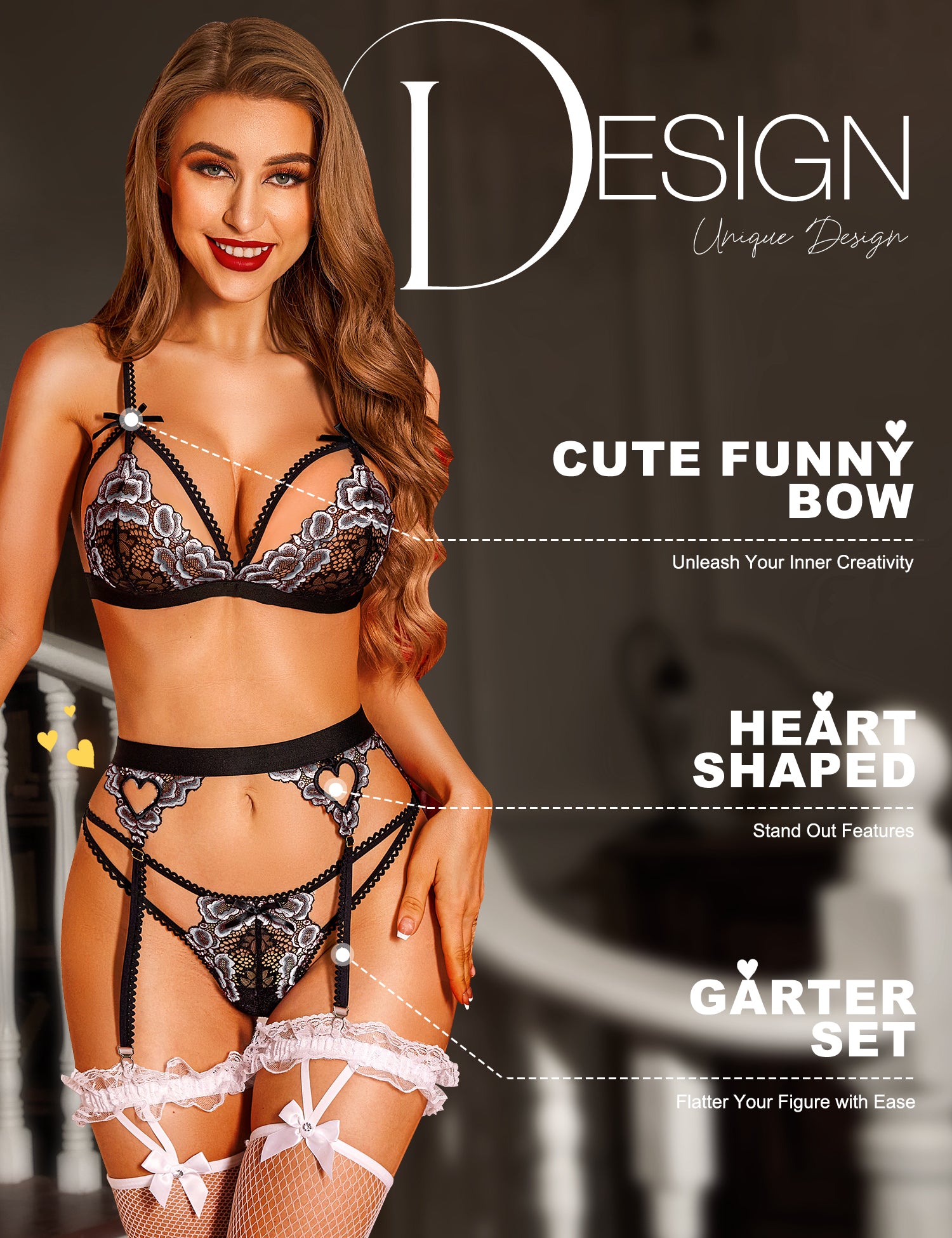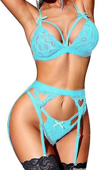 - Style: Delight your partner with this three-piece lingerie set. Garter belt set, garter lingerie, three-piece bodysuit, women in lingerie, lace garter set, lingerie for women, bra & panty sets