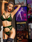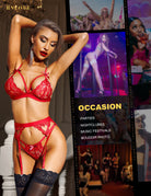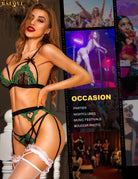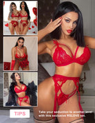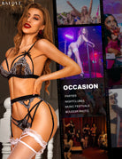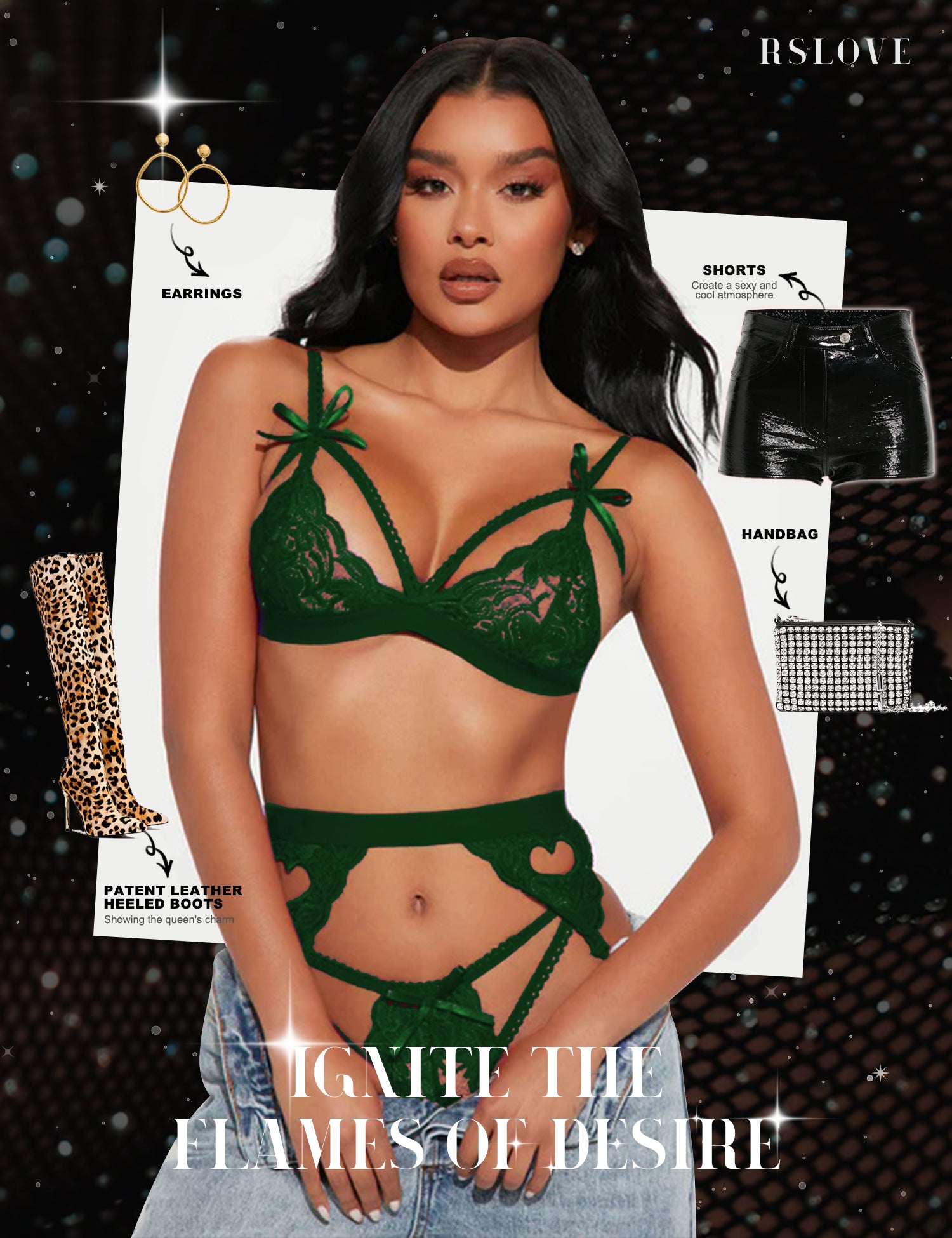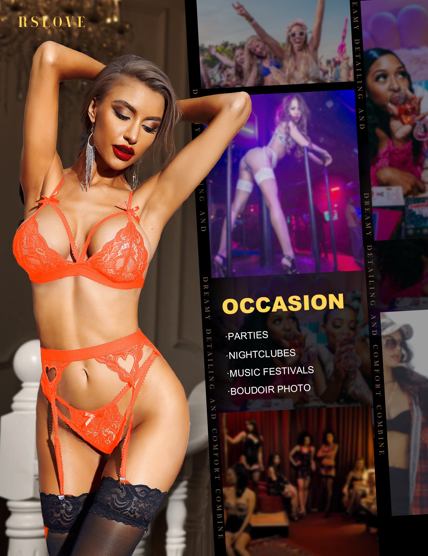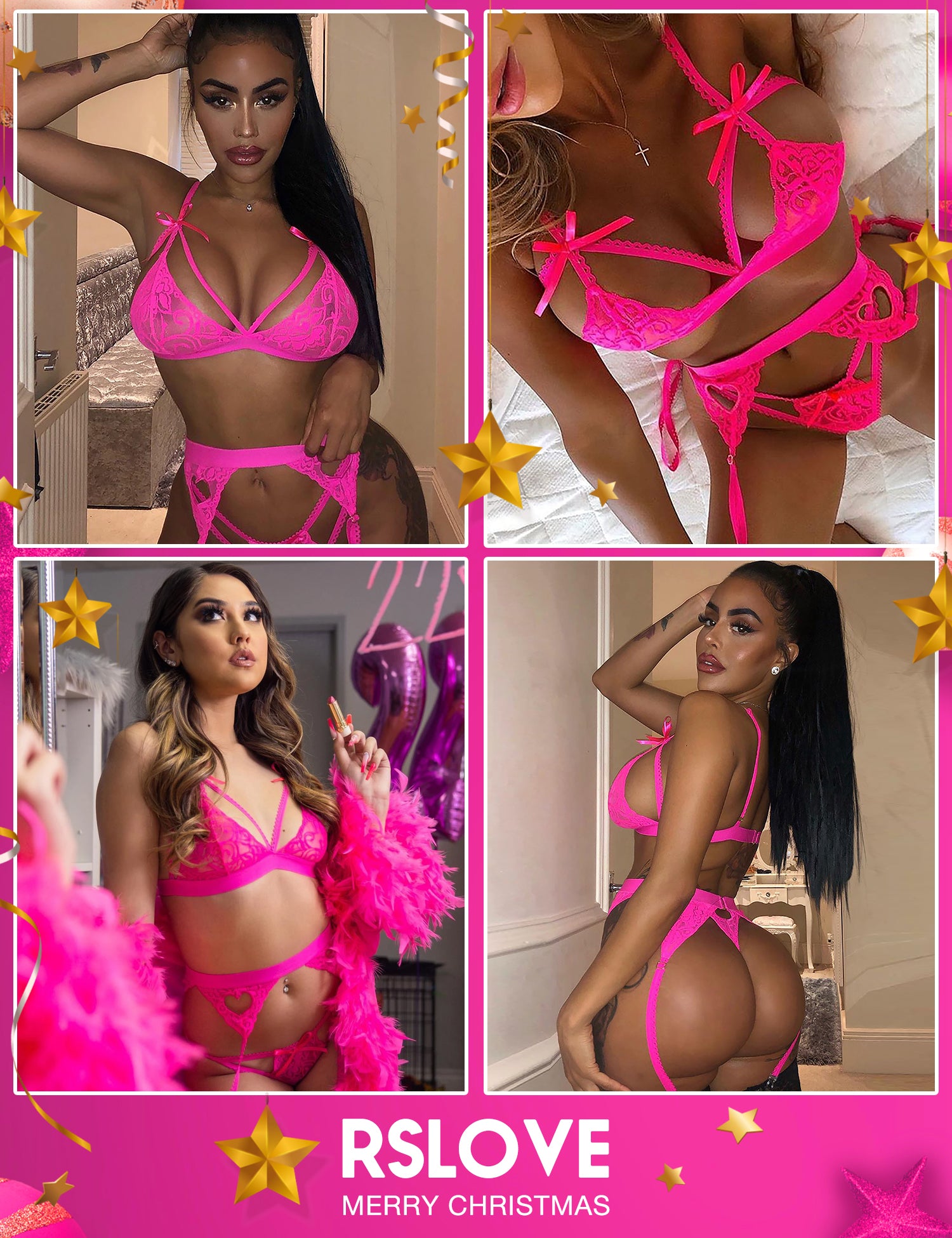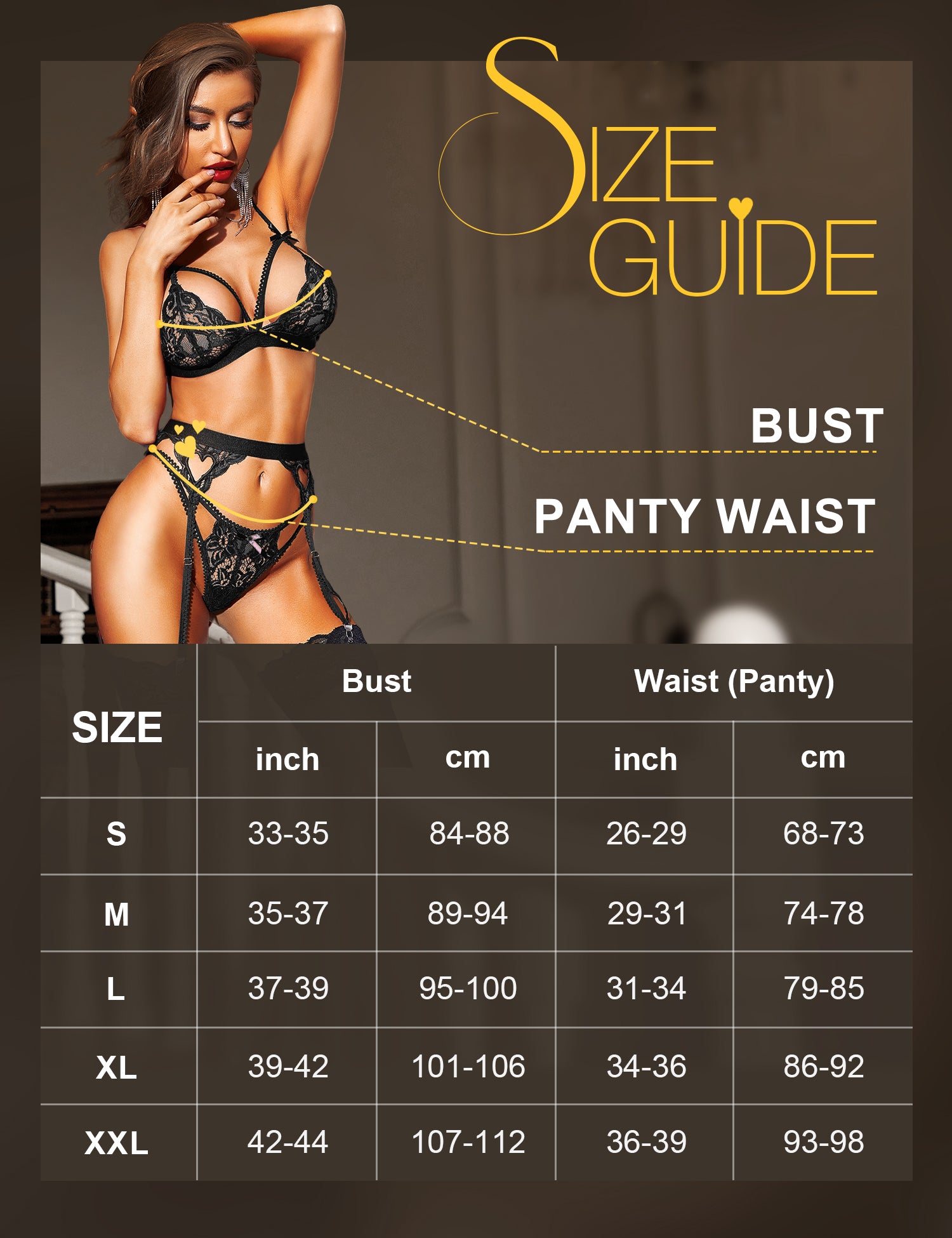 - Style: Delight your partner with this three-piece lingerie set. Garter belt set, garter lingerie, three-piece bodysuit, women in lingerie, lace garter set, lingerie for women, bra & panty sets