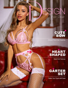 - Design: Delicate sheer lace adorns the supportive bustier while satin bow accents playfully accentuate the female form. The adjustable straps and hook-and-eye closures at the back ensure a comfortable, snug fit. Our signature heart shaped cut-out panels draw the eye to leave a lasting memory