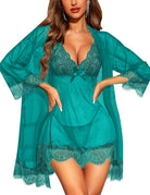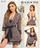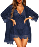 RSLOVE Women Sexy Lingerie Set 3 Piece Babydoll & Lace Kimono Robe Strap Chemise Sleepwear Mesh Nightgown