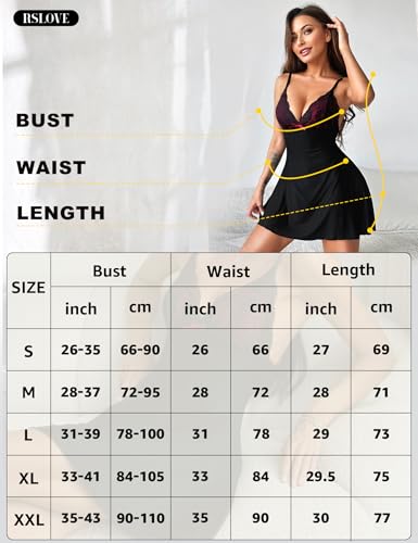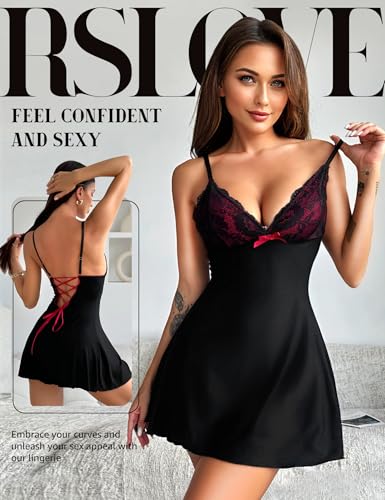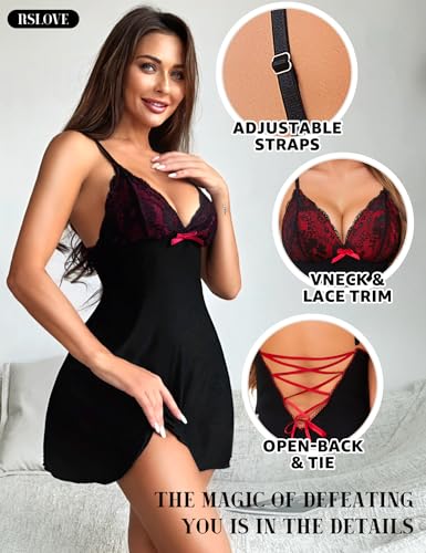 RSLOVE Women Nightgowns Lingerie Sexy - Babydoll Chemise Lace Sleepwear Tie Back Nightwear