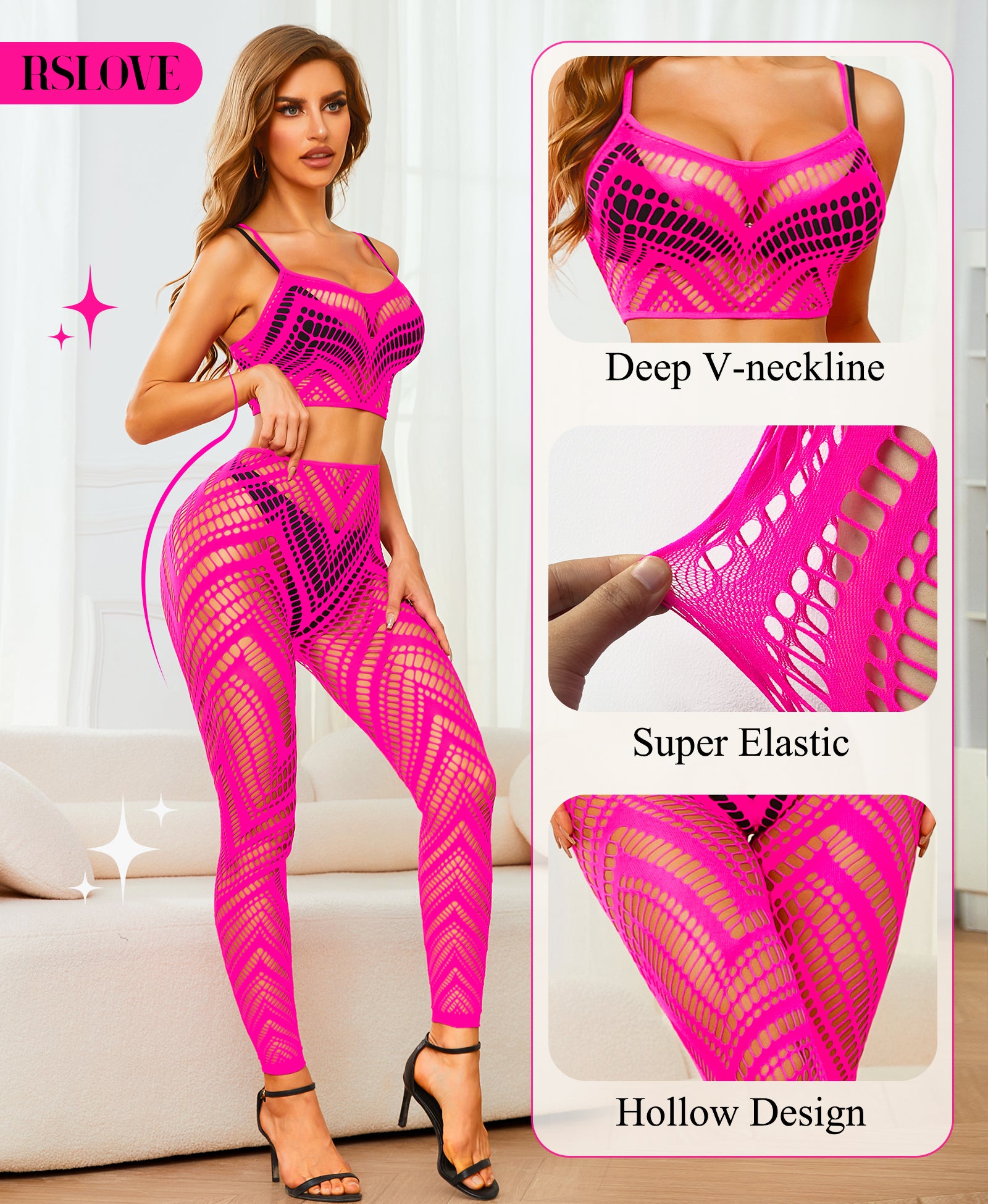 • Sexy Secret Weapon: This enticing sexy bodysuit set includes a sexy camisole top with fishnet leggings. It can be worn not only as lingerie but also as a versatile layering piece or a standalone outfit. You can accessorize it with a diamond-studded waist belt or other types of belts as accents. This set is attention-grabbing in terms of appearance. Whether it's for intimate moments or daily wear, this lingerie, filled with exotic charm, will become your secret weapon to become a sexy goddess.