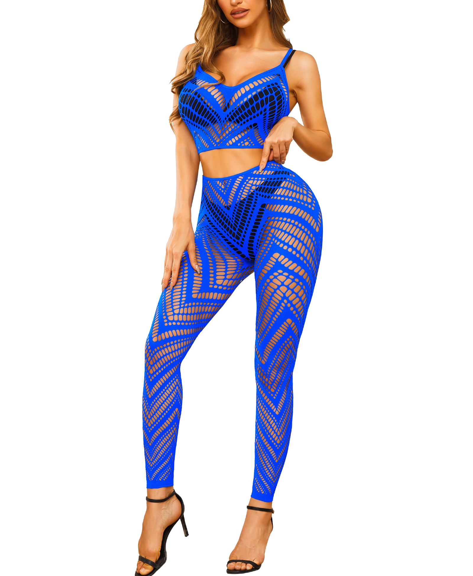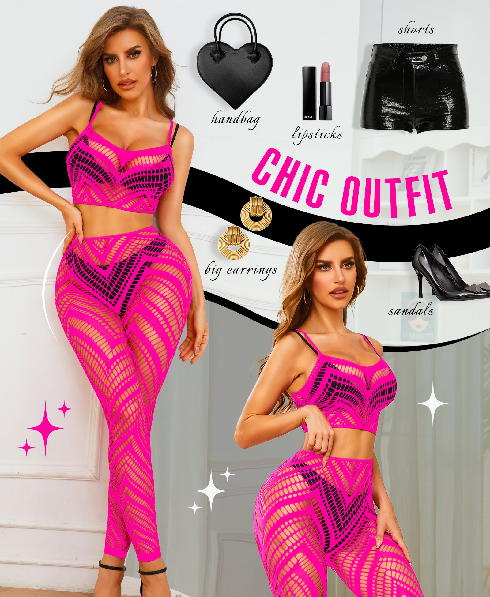 - Sexy Secret Weapon: This enticing sexy bodysuit set includes a sexy camisole top with fishnet leggings. It can be worn not only as lingerie but also as a versatile layering piece or a standalone outfit. You can accessorize it with a diamond-studded waist belt or other types of belts as accents. This set is attention-grabbing in terms of appearance. Whether it's for intimate moments or daily wear, this lingerie, filled with exotic charm, will become your secret weapon to become a sexy goddess.