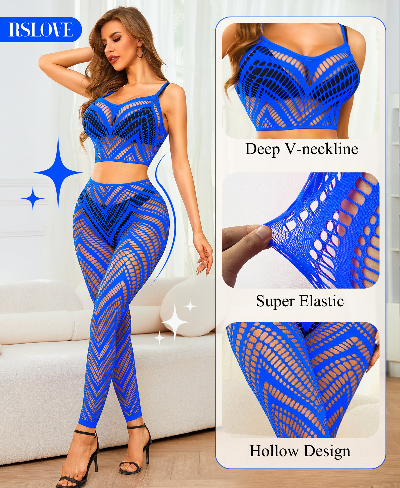 RSLOVE Womens Sexy Lingerie Sets Bodystocking - Fishnet Bodysuit Sexy Camisole top & Stocking 2 Piece Cutout Fishnet Legging